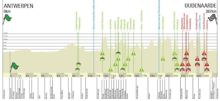 There’s very little to add to what was outlined last year. The course is essentially unchanged from 2018. Riders will cover 270 km from Antwerp to Oudenaarde with 17 helligen (cobbled climbs) and 5 section of flat cobbles. You can see a provisional start list here.