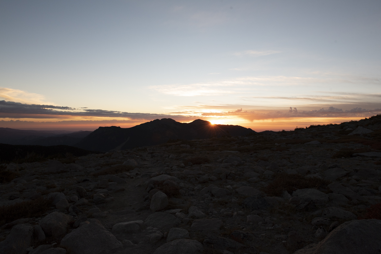 We rose above treeline right around first light and found ourselves at the base of the boulder field just after sunrise. The base of the boulder field sits about three-quarters of the way to the peak in terms of distance. Yes, you hike 5 miles just to start the climb. In terms of climbing time, it’s about half if not less. The boulder field marks the beginning of Longs’ more technical climbing and simultaneously raises the incline several notches. Add to this new found difficulty the increasingly thin air at about 12,600 feet and things start to get real. We stopped to hammer down some calories and continued on our way.