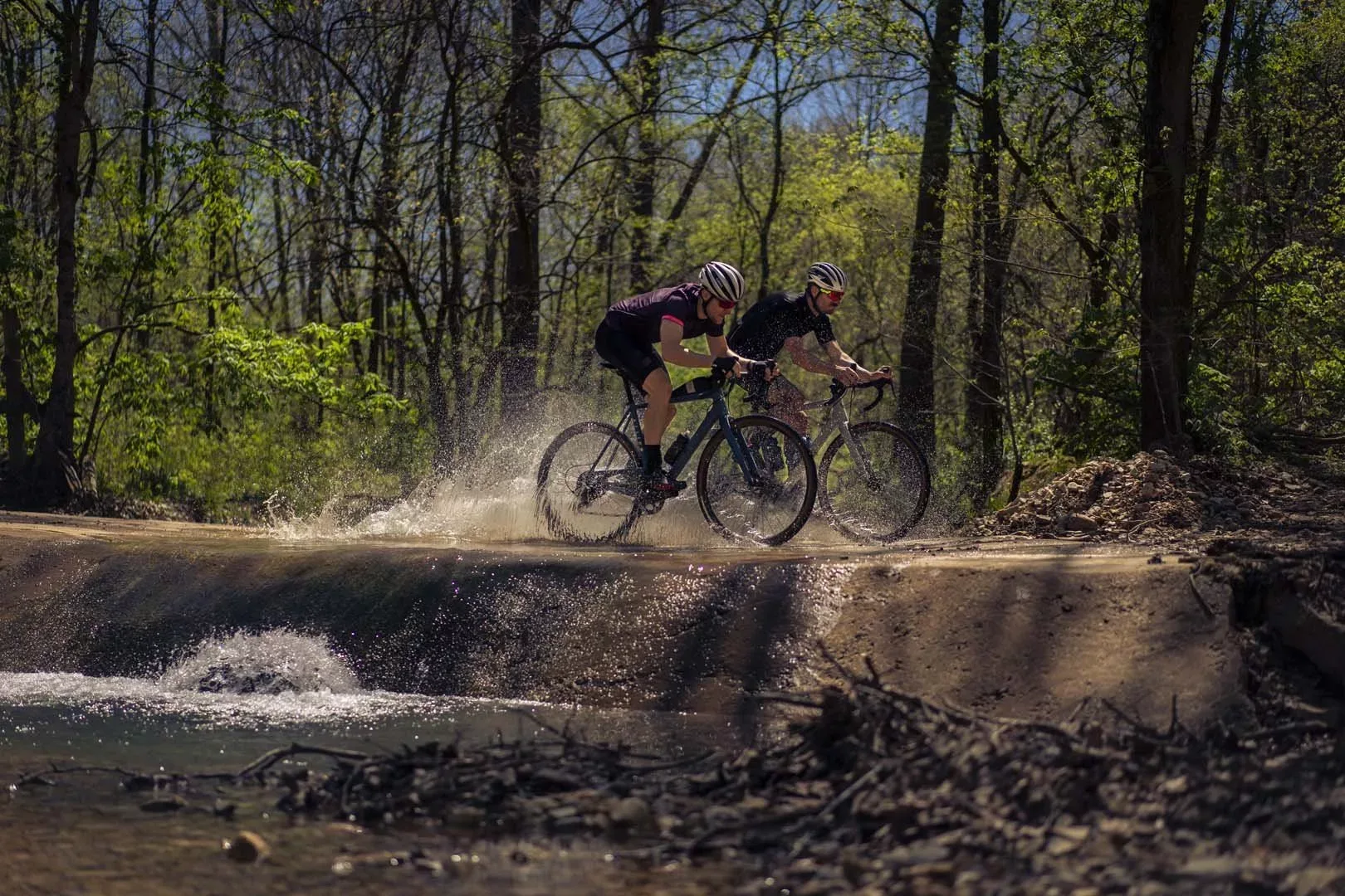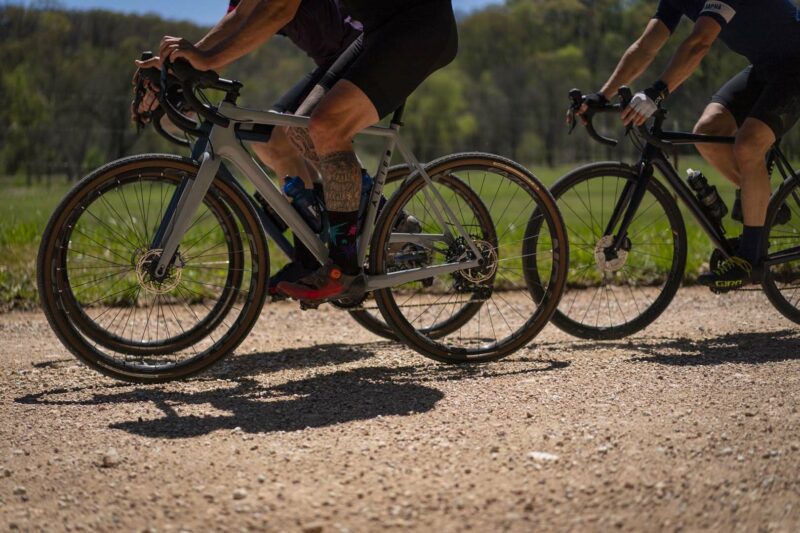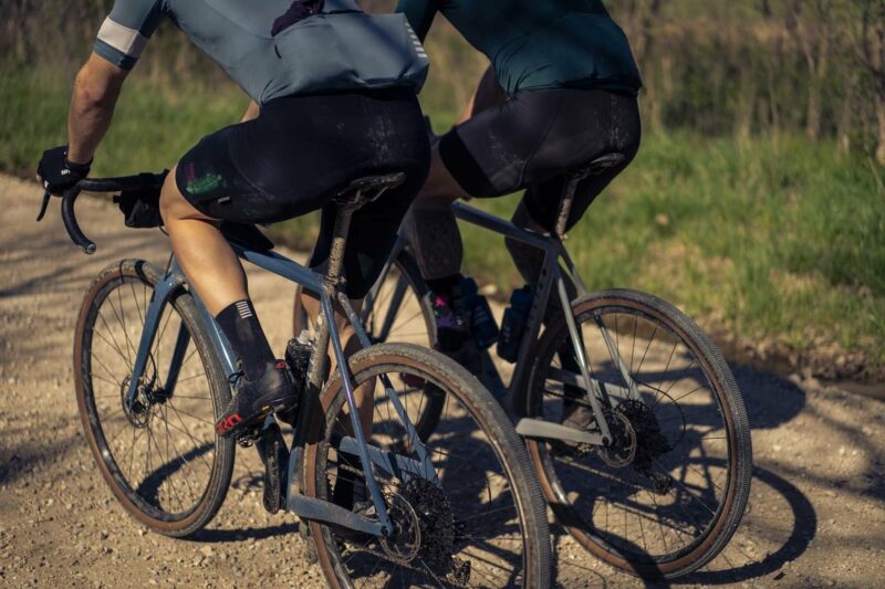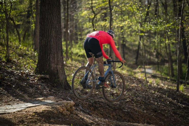 The ABLE is a highly capable performance off-road machine that tilts more towards the “mountain skinny” side of the gravel segment. It can handle a lot of tire but still has an extremely short rear end, the same in fact as the ALLROAD at 420mm. This is achieved by the most striking feature on the bike, the elevated drive side chainstay. The front end is geared more towards offroad riding so it gives up a little in terms of handling on the pavement, but feels incredibly stable at speed on the dirt. We have been ripping around here in Arkansas on everything from pavement to single track and I can tell you that every ride has us finishing with a huge smile – it’s just so fun to ride. We are blown away by how agile a tight, lightweight bike feels on single track. We can’t wait to get these bikes out to you all so you can share in the fun.