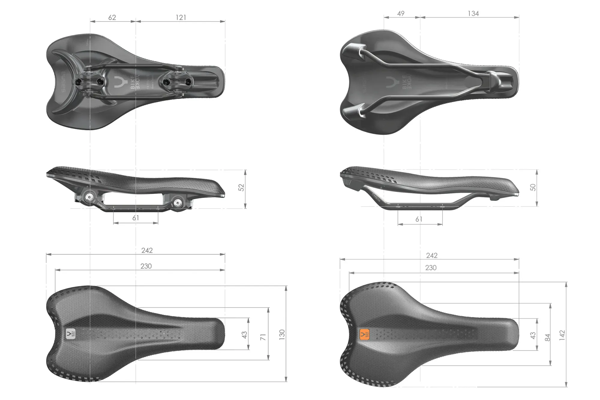A more common approach, adopted by brands like Bjorn, Fizik, Prologo, Selle Italia, Selle San Marco, and Specialized, involves using generalized pressure mapping data to create zones of varying support for a universal fit. However, even these saddles typically start around $300. BikeYoke Sagma is much more affordable.