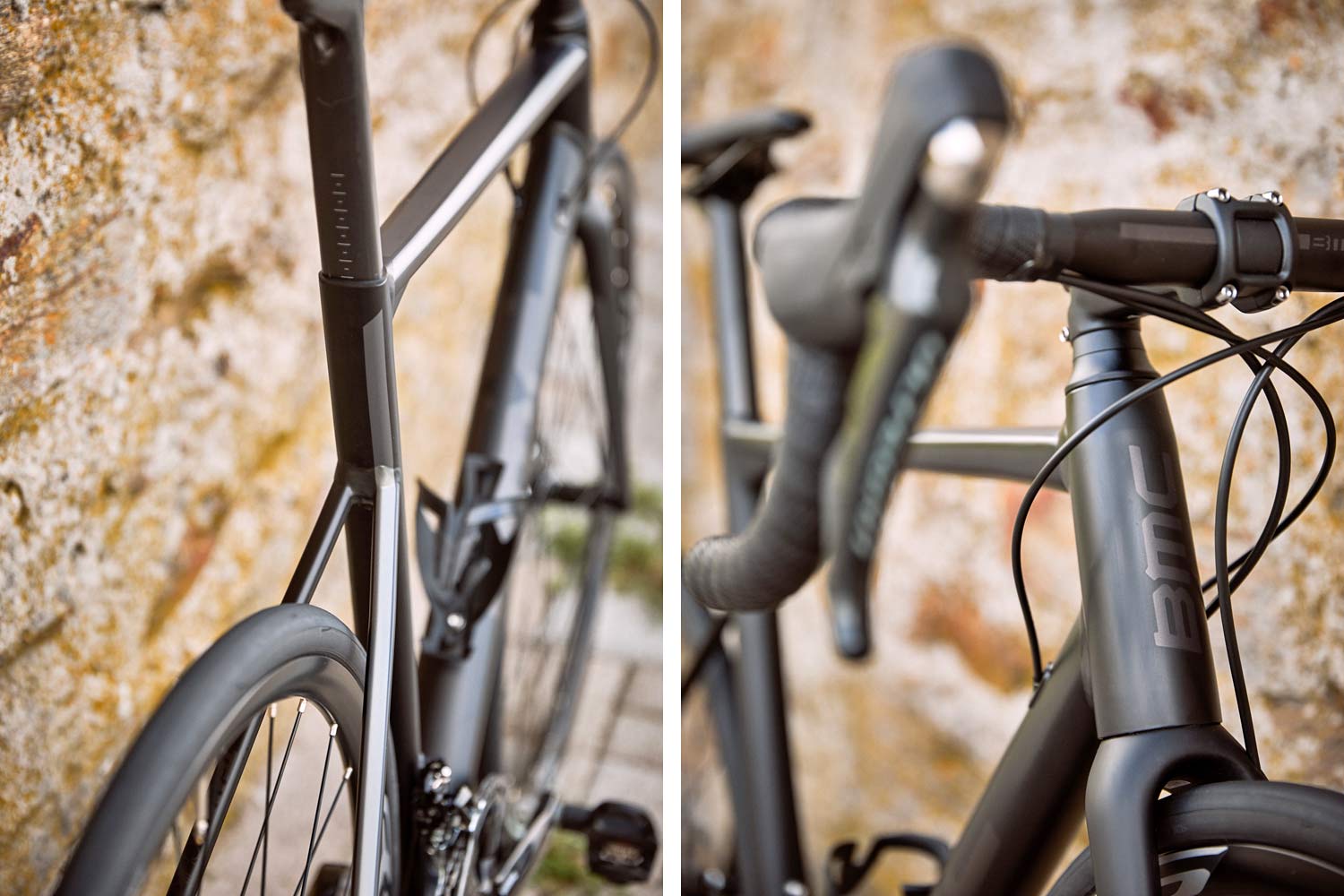 The frame’s tubing gets size-specific butting to create light and compliant frames across all sizes. Saving smaller riders from overly stiff road feel and bigger riders from squishiness. The comfort of aluminum bikes has improved a lot in recent years, BMC keeps things comfy with something they call Race-Tune Compliance. Small diameter flattened & dropped seatstays, a compliant D-shaped seatpost & the same full carbon fork from the carbon Teammachine SLR02 add some flex to help damp road vibrations.