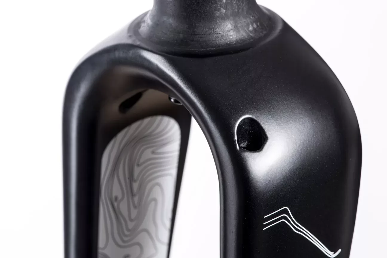 The Cairn Adventure Gravel Fork was developed for the E-Adventure 1.0, not only does it fit the E-Adventure 1.0 perfectly, but serves as a great upgrade to any gravel bike as well. The full carbon monocoque design offers clearance for up to 700x45c or 650bx2.25 €³ tires. Dynamo cable routing, ‘anything’ cage mounts and full fender compatibility. Everything is there.