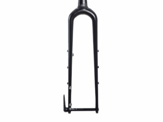 A full carbon monocoque design which offers clearance for up to 700x45c or 650bx2.25″ tyres. Dynamo cable routing not only for lighting but also fully internally for USB charging ports. Mounts on both fork legs for anything cages allowing you to optimize your weight distribution and positioning. Of course, all the modern standards and expected features like full fender mounts, thru axle and flat mount disc brakes.