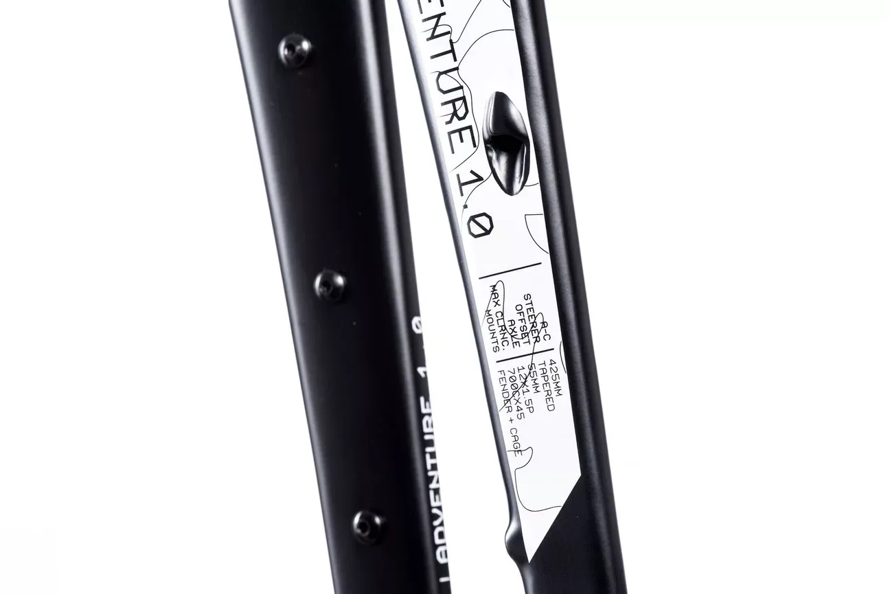 The Cairn Adventure Gravel Fork came about during the development of the E-Adventure 1.0. Struggling to find a fork that offered everything we needed without compromise was an impossible task. The fork needed to be able to take anything cages for epic multi-day adventures, provide routing for dynamo cables for lighting and charging and something that would match the vast amounts of tyre clearance we had achieved with our frame. This fork we think not only suits the E-Adventure 1.0 but it could be a great upgrade to any Gravel bike for someone with the drive to explore as much as us.
