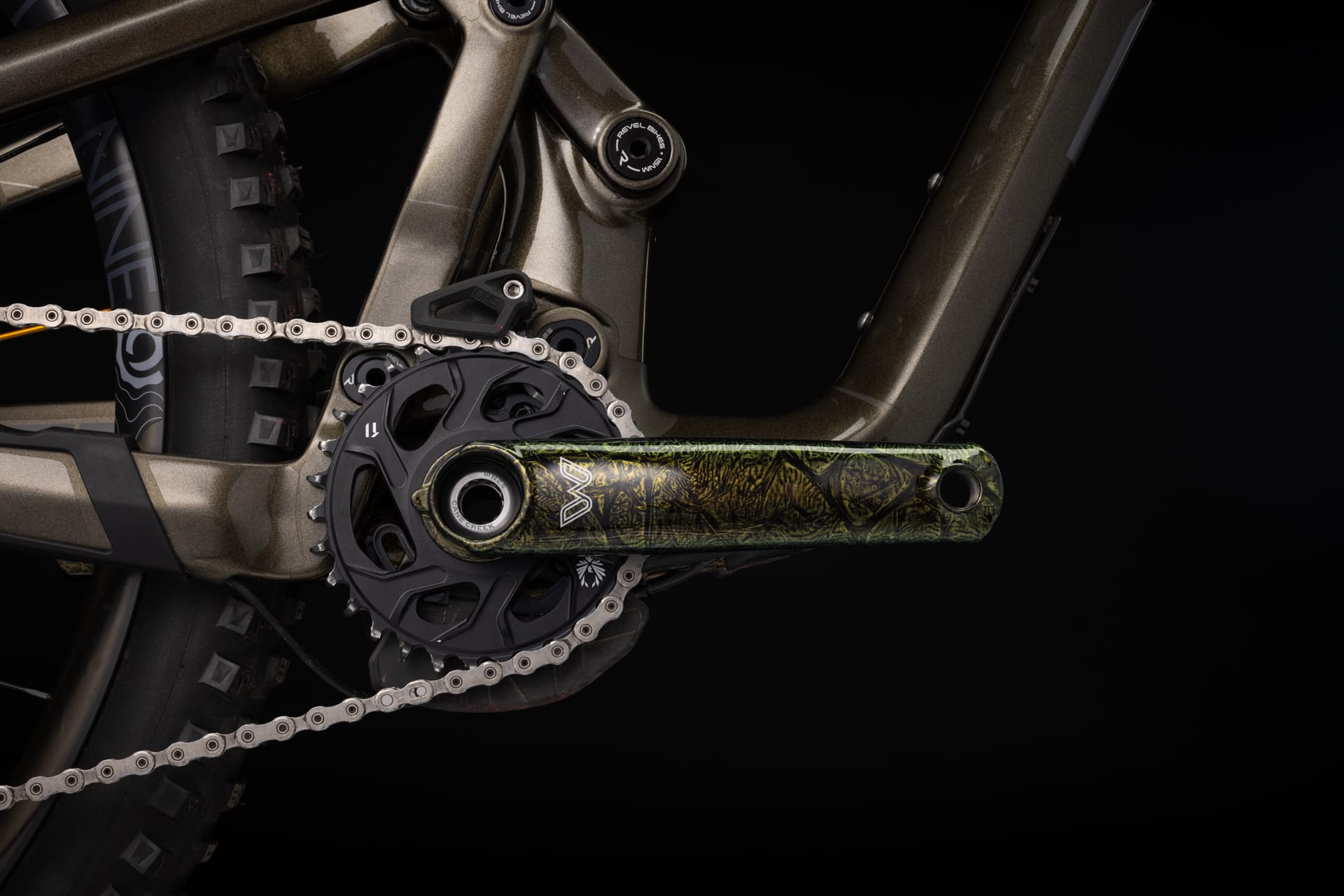 eeWings Aurora are hand-painted using the Saran Texture Method to give each crank its own unique pattern. The color changing paint transitions from gold to green to bronze, depending on the light. This color and texture combination bears a striking resemblance to the Aurora Borealis – a spellbinding natural light phenomenon, witnessed at high latitudes in Winter.