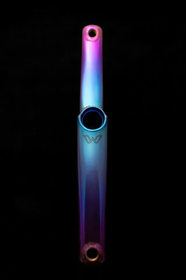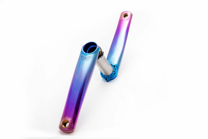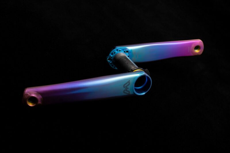 Cane Creek Components just released an extremely limited quantity of eeWings titanium cranksets in a tie-dye finish. The eeWings Tie-Dye are constructed from high-grade titanium just like the standard eeWings cranks but are hand-finished in a blue/purple tie-dye color.