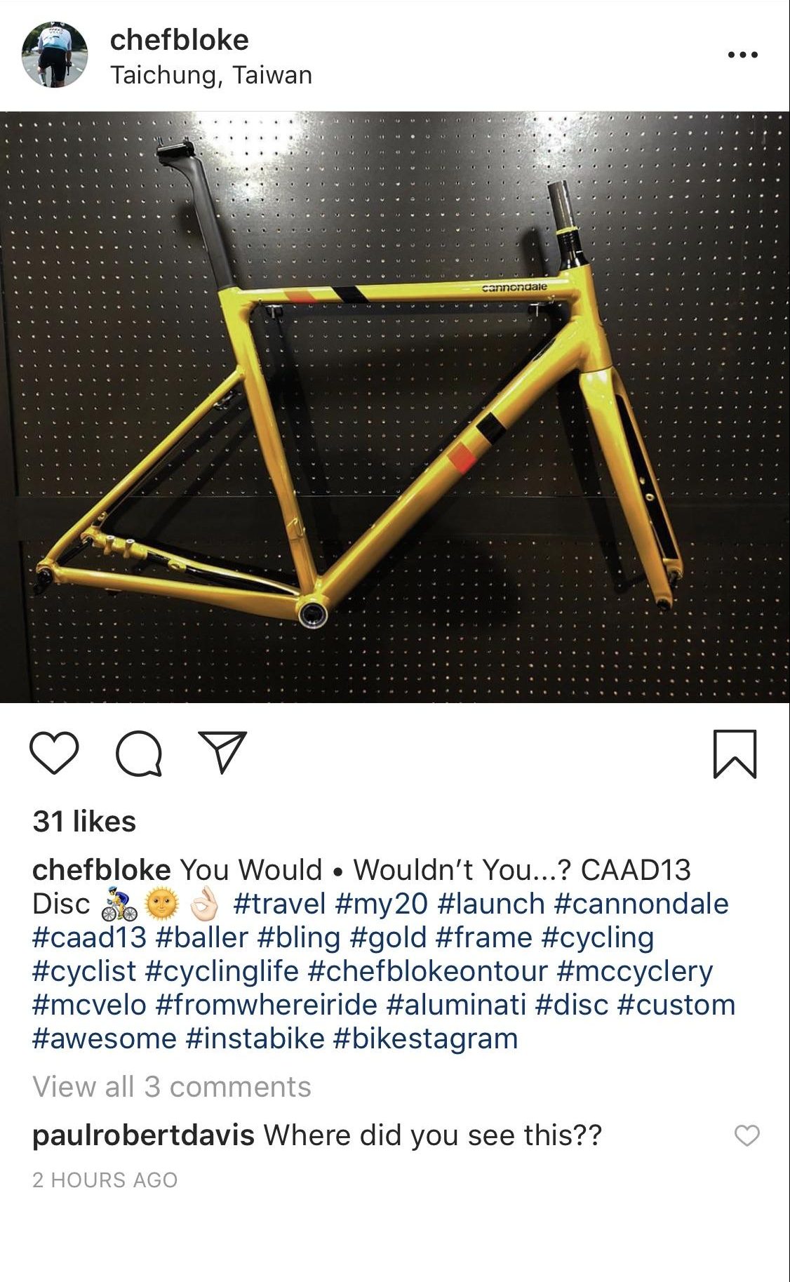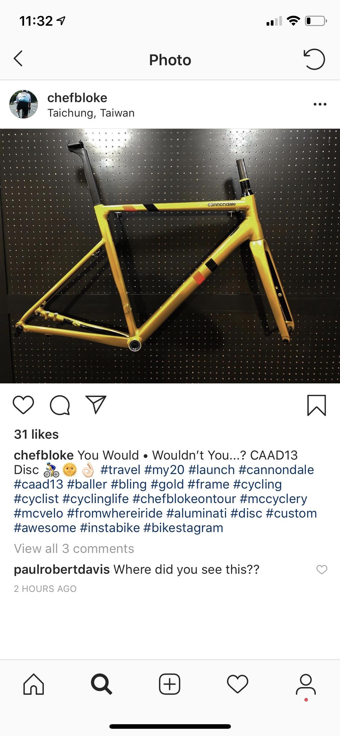 The CAAD 13 pictured appears to be the disc model with front and rear 12mm thru axles which would bring the Cannondale alloy line up to date with its competition.