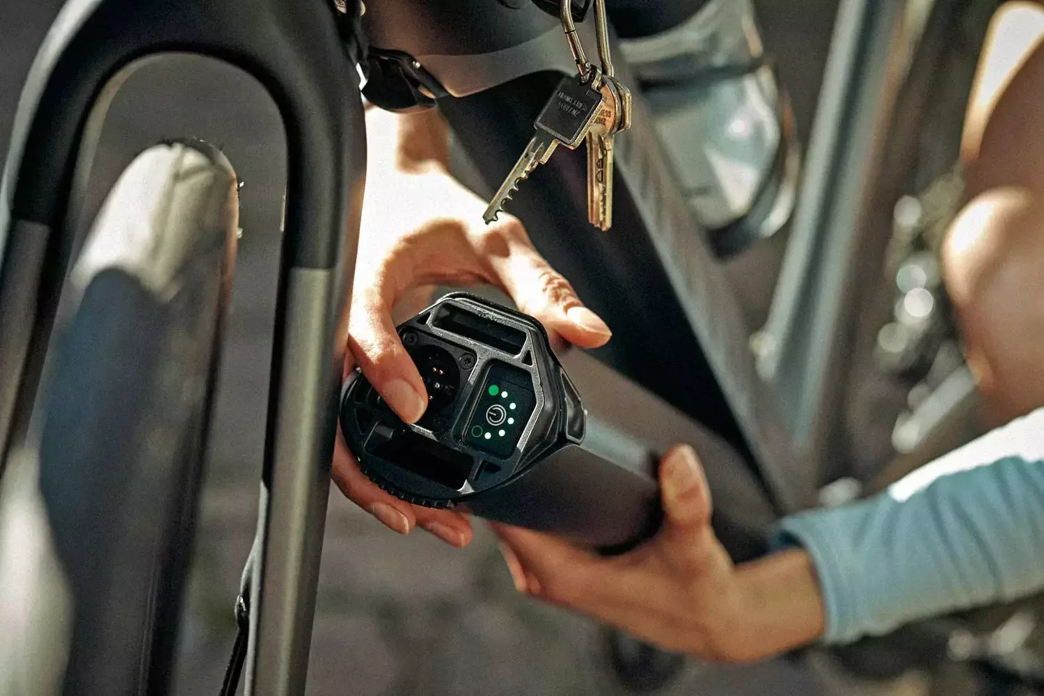 Power is supplied by a Fazua electric motor unit, providing a maximum 250 watts of power and 60Nm of torque. The motor sits in the bottom bracket shell. There’s a dual-sided torque meter which measures how much power you’re putting into the system via pedaling and matches the system’s output to avoid power surges and provide a more natural feel on the bike.