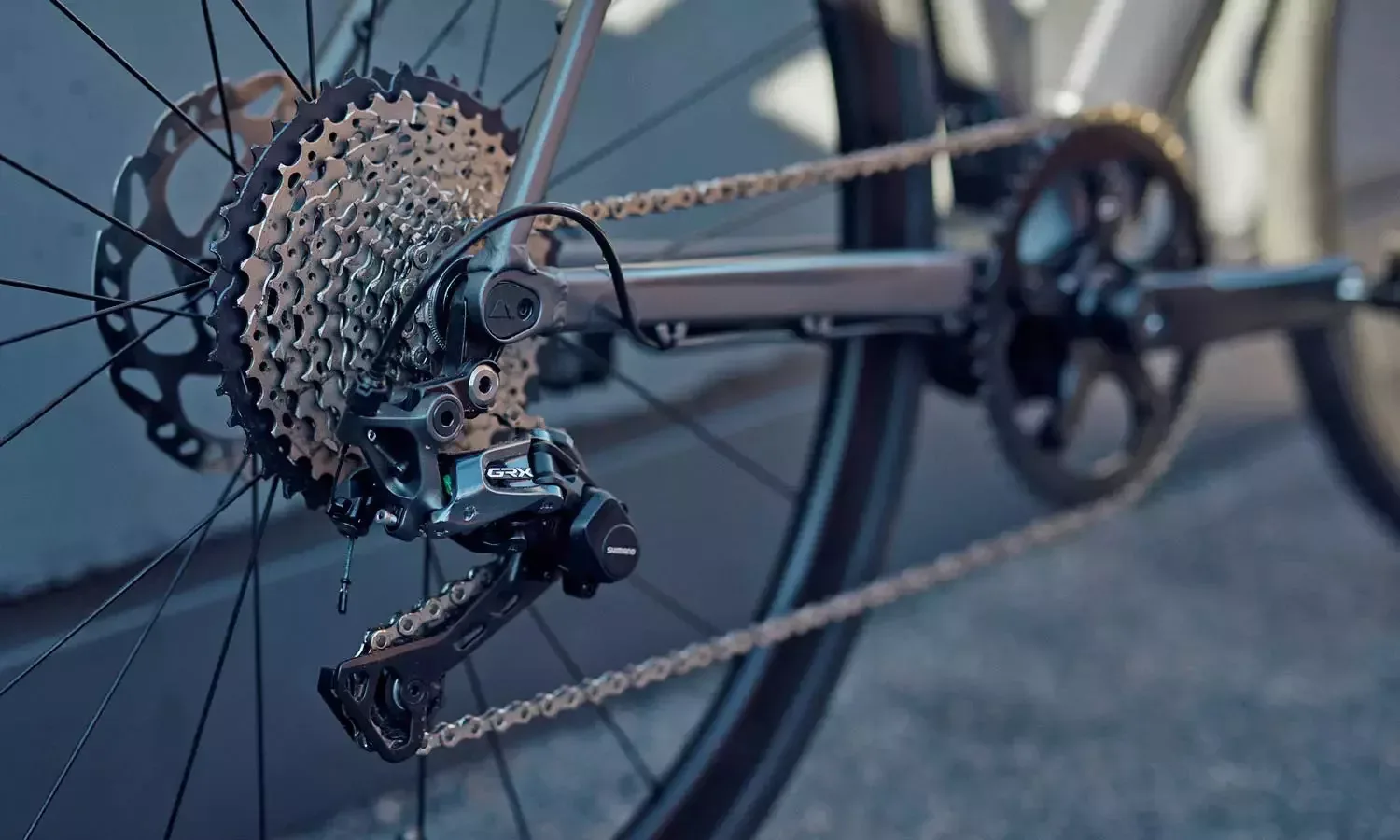Changes include a 48-tooth single chainring and Shimano GRX 11-speed gravel drivetrain with a clutched rear mech and 11-42t cassette. The GRX groupset features hydraulic disc brakes with 160mm rotors for strong stopping power.