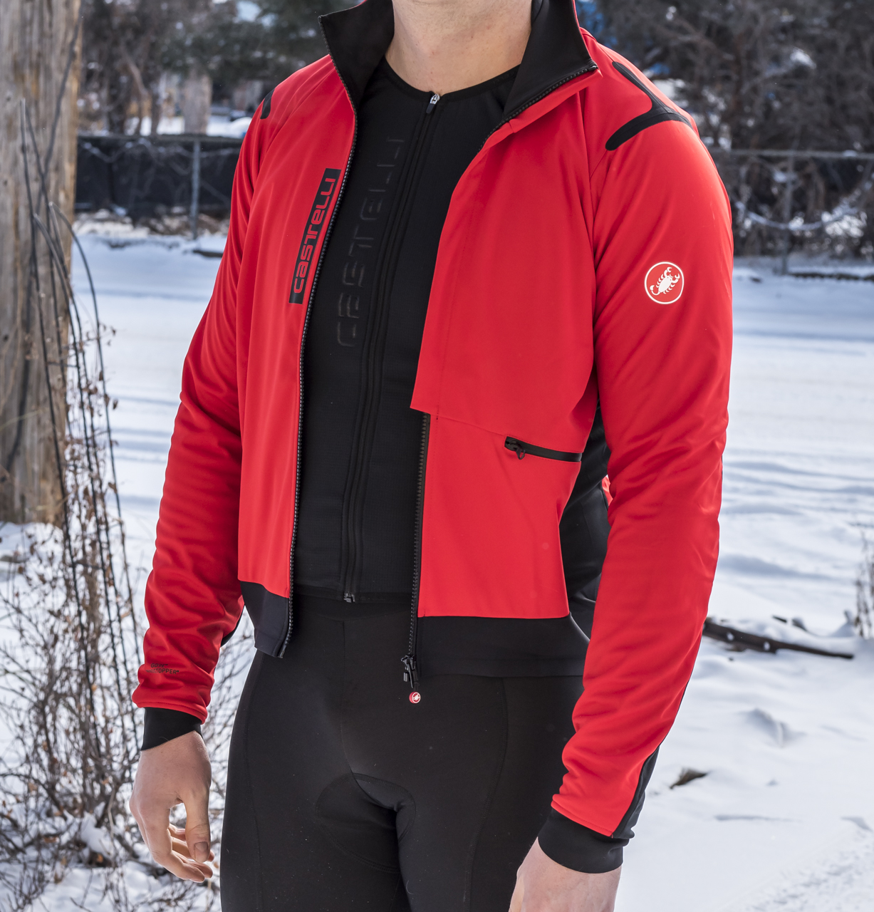 - Castelli silicone text gripper at waist keeps the jacket from riding up