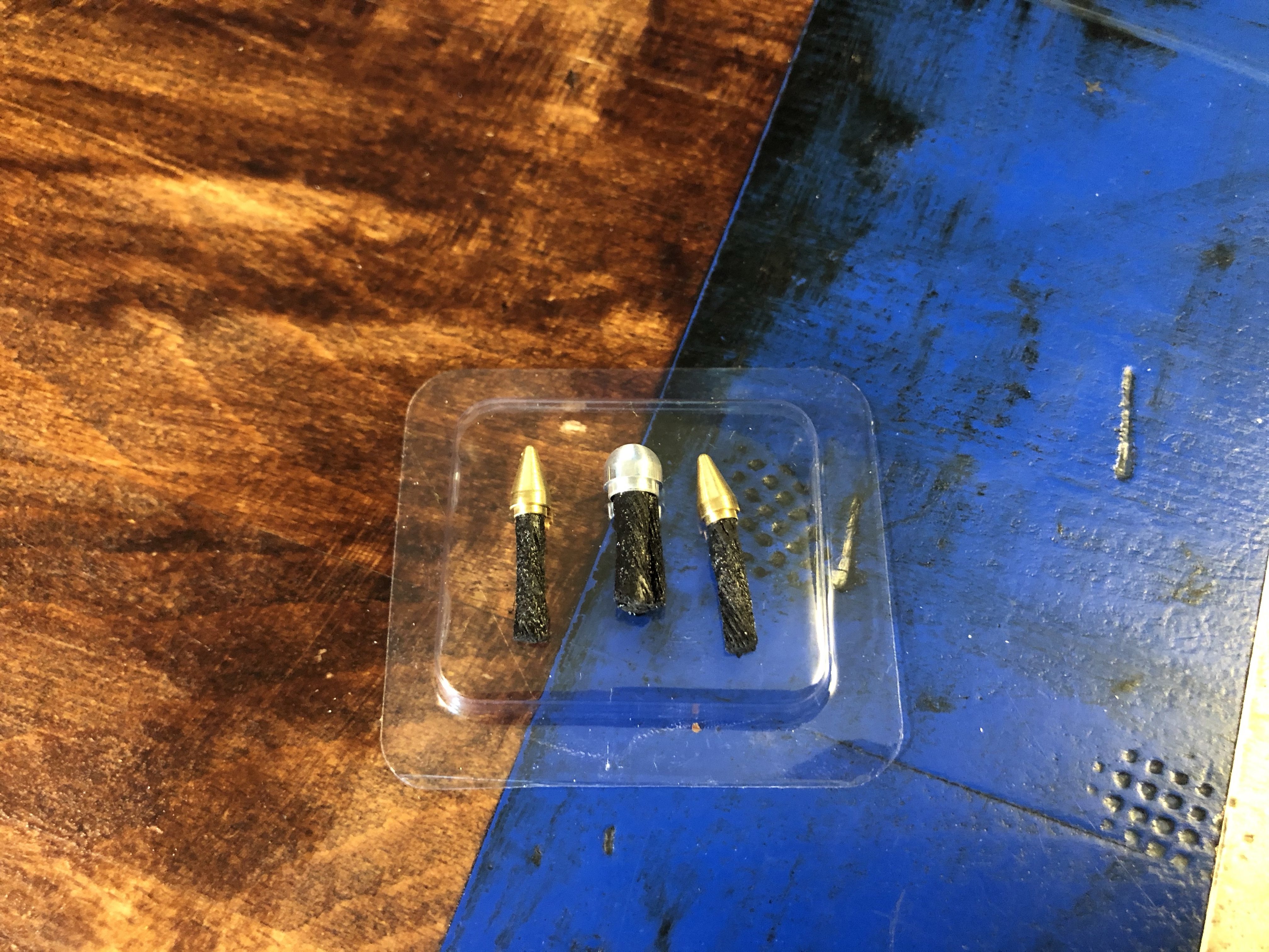 The Dynaplug Racer does things a little different. The innovative design combines a piercing element and plug into one consumable product, a brass or aluminium bullet tip attached to a viscoelastic rubber-impregnated cord.