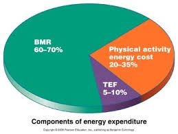 Basal Metabolic Rate (BMR) is the rate of energy expenditure by the body when performing its necessary but mostly unseen functions. This the metabolic activity that supports the basic processes of life. Think of these as the calories you would burn if you simply sat in bed all day and watched TV. You need this energy to breath, pump blood, maintain body temperature, make new cells, maintain organ function, etc… You might think that this would make up a relatively small portion of your daily total energy expenditure. You’d be wrong. Approximately 2/3 of the total energy a person expends each day simply goes to keeping the lights on.