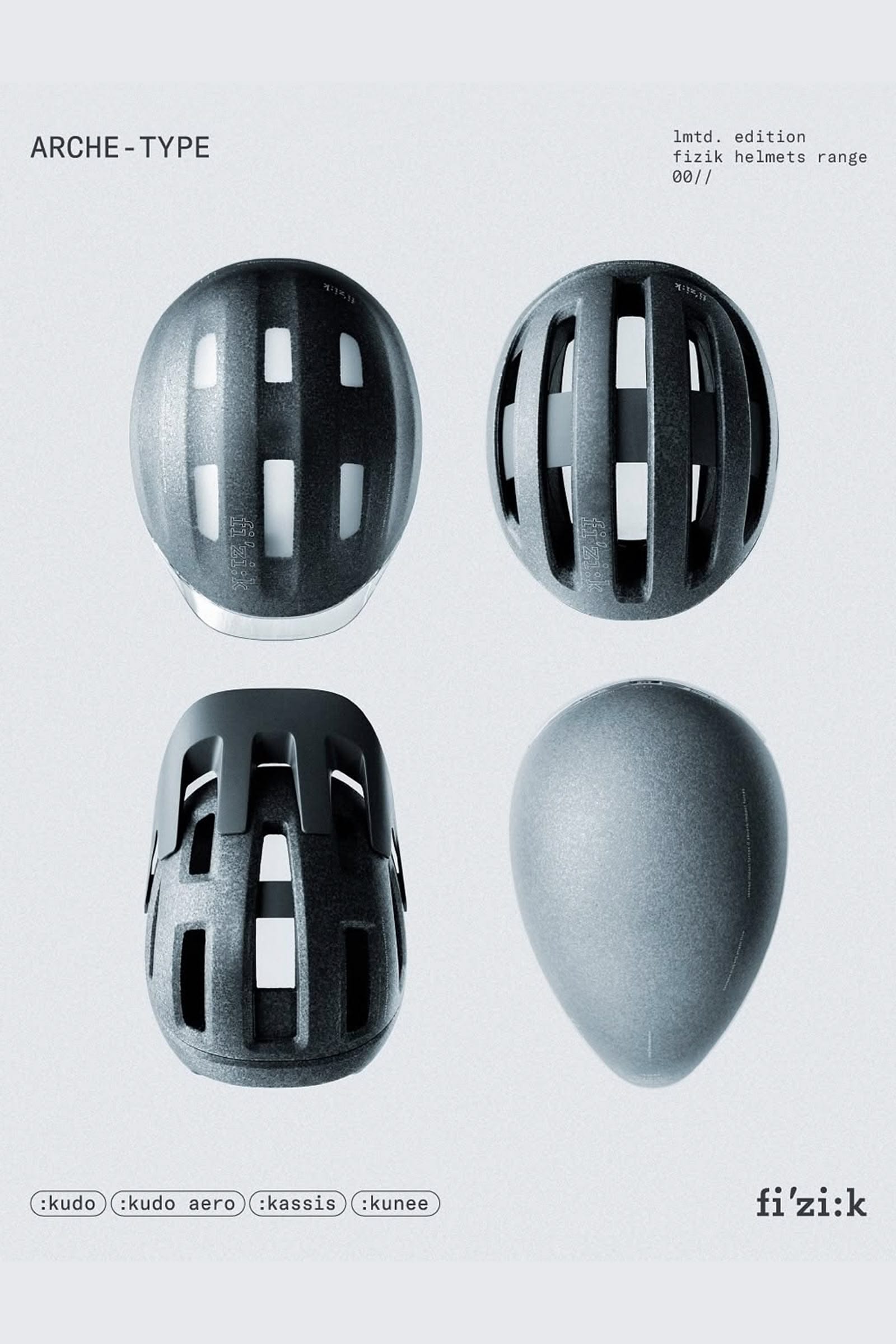 Fizik introduces "Arche-Type," a limited-edition helmet collection with a translucent shell revealing the EPS core. Explore this unique design across Kudo, Kunee, and Kassis models.