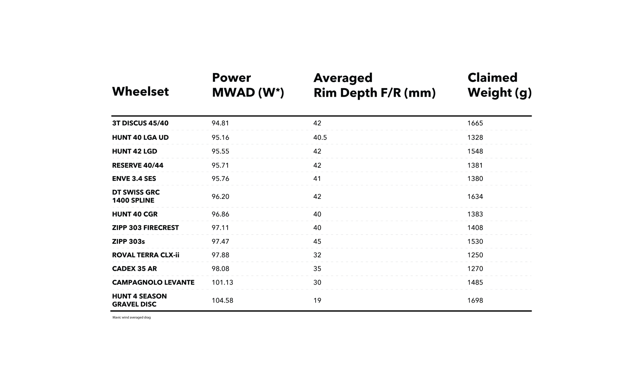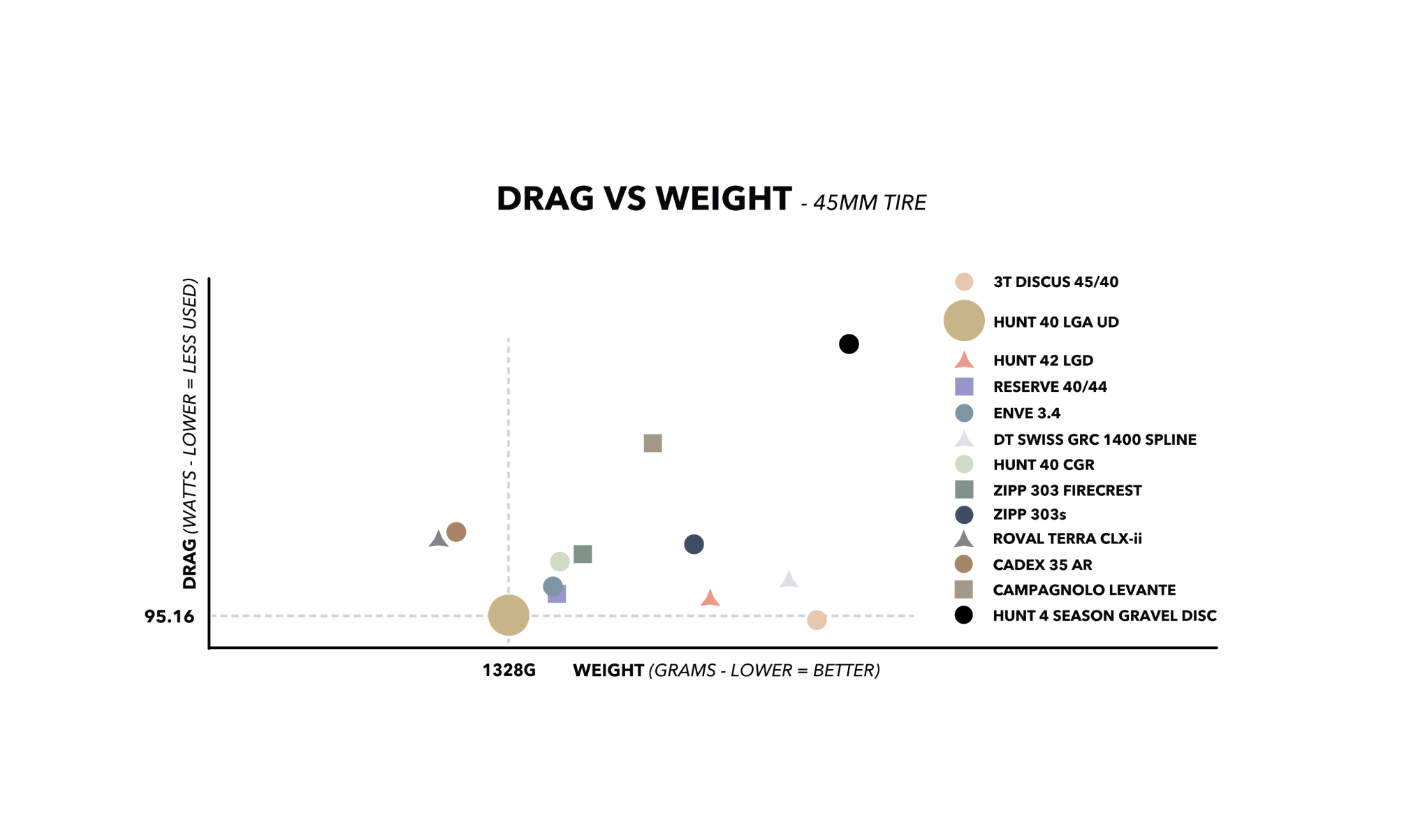 Hunt claims that its new wheelset is nearly as aerodynamic as the 3T Discus 45 / 40, the only wheelset to outperform it in wind tunnel testing. However, when factoring in the 3T Discus's extra 314g weight, the Hunt 40 Limitless Gravel Aero becomes the top contender in terms of weight-to-aero ratio. Tested in the GST Windkanal wind tunnel at speeds of 40–45 km/h, the 40 Limitless Gravel Aero shows exceptional performance across yaw angles, making it ideal for competitive gravel racing.