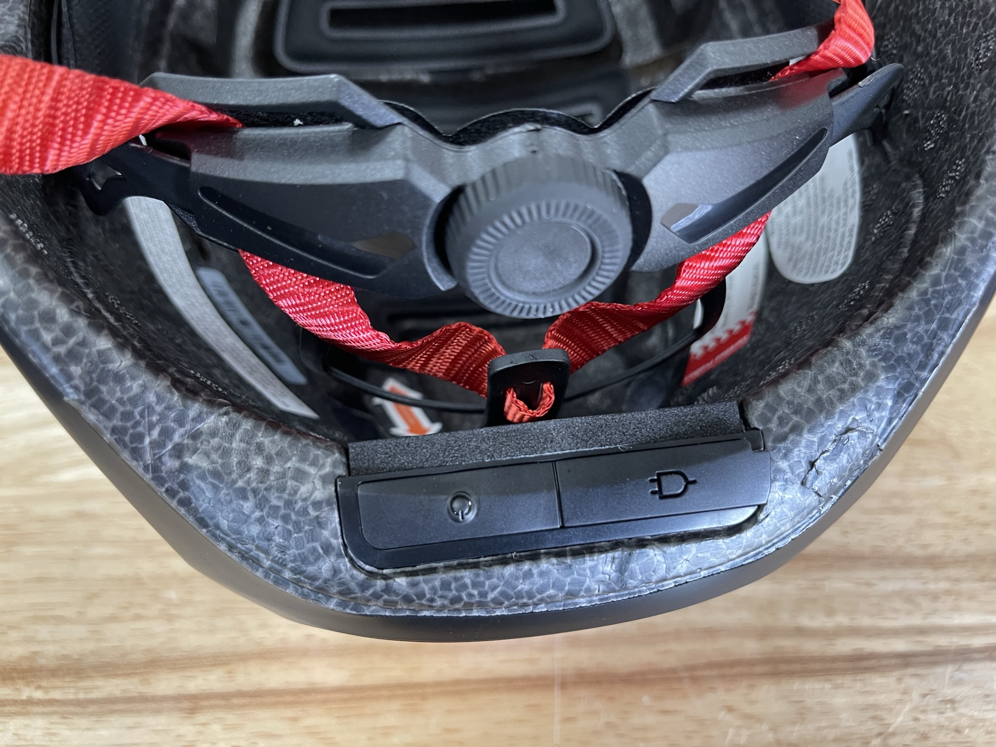 On the front of the helmet is another light which can mirror the strobing pattern of the rear light or function as a headlight. The former it does quite well, the later not so much. Even in the darkest conditions the front light doesn’t pull off illuminating your way.