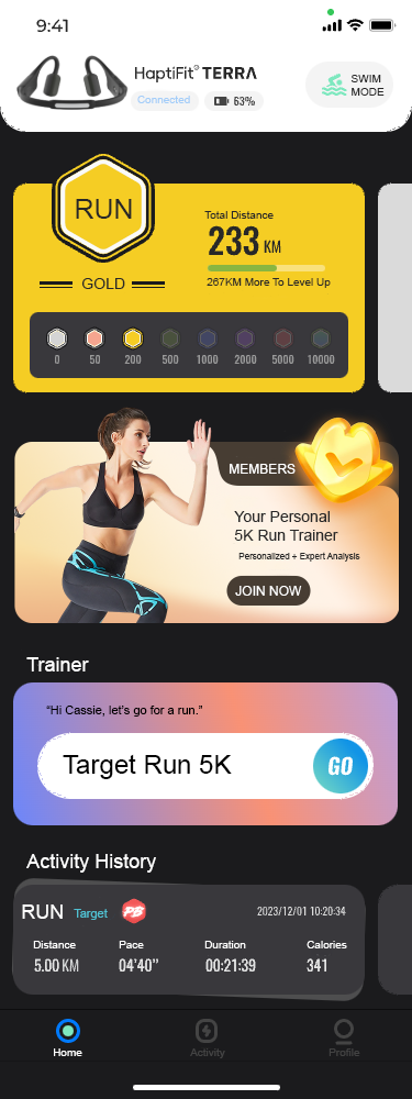 Additionally, the HaptiFit Terra boasts a long-lasting battery life, with eight hours of usage and high-speed magnetic charging. It also offers 32GB of music storage, eliminating the need to carry a phone during workouts – a feature swimmers will particularly appreciate.