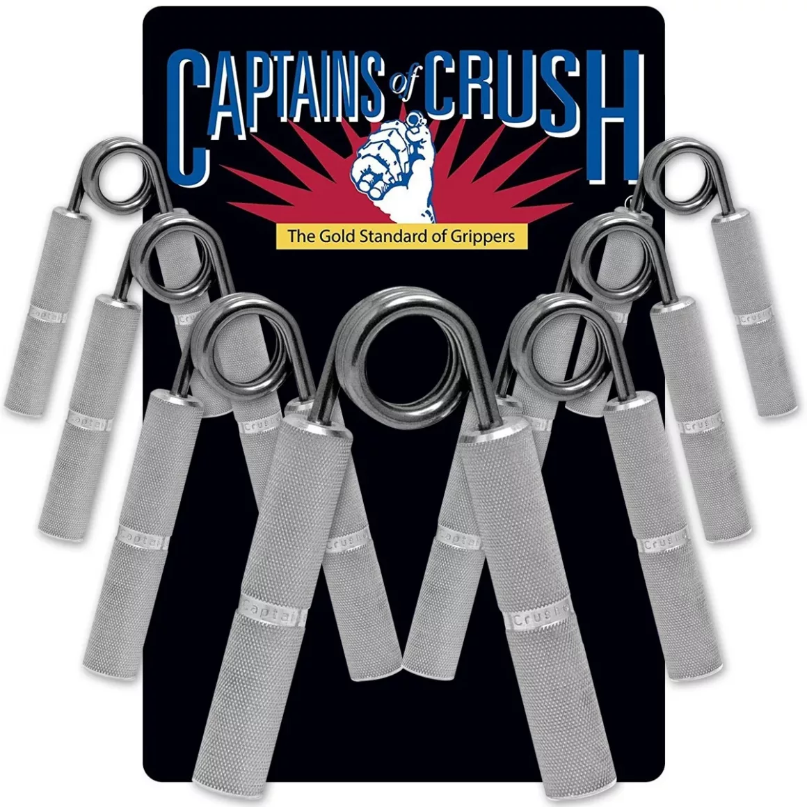 These are your grandfathers squeaky, wimpy little grippers. In 1993, Ironmind developed an aircraft-grade aluminum gripper called Captains-of-Crush for serious strength athletes and strongmen as an alternative to the cheap plastic variety common at the time and they can help you build serious forearm strength. There are a number of models to choose from. For most athletes, I would start with a trainer, #1 and #1.5.