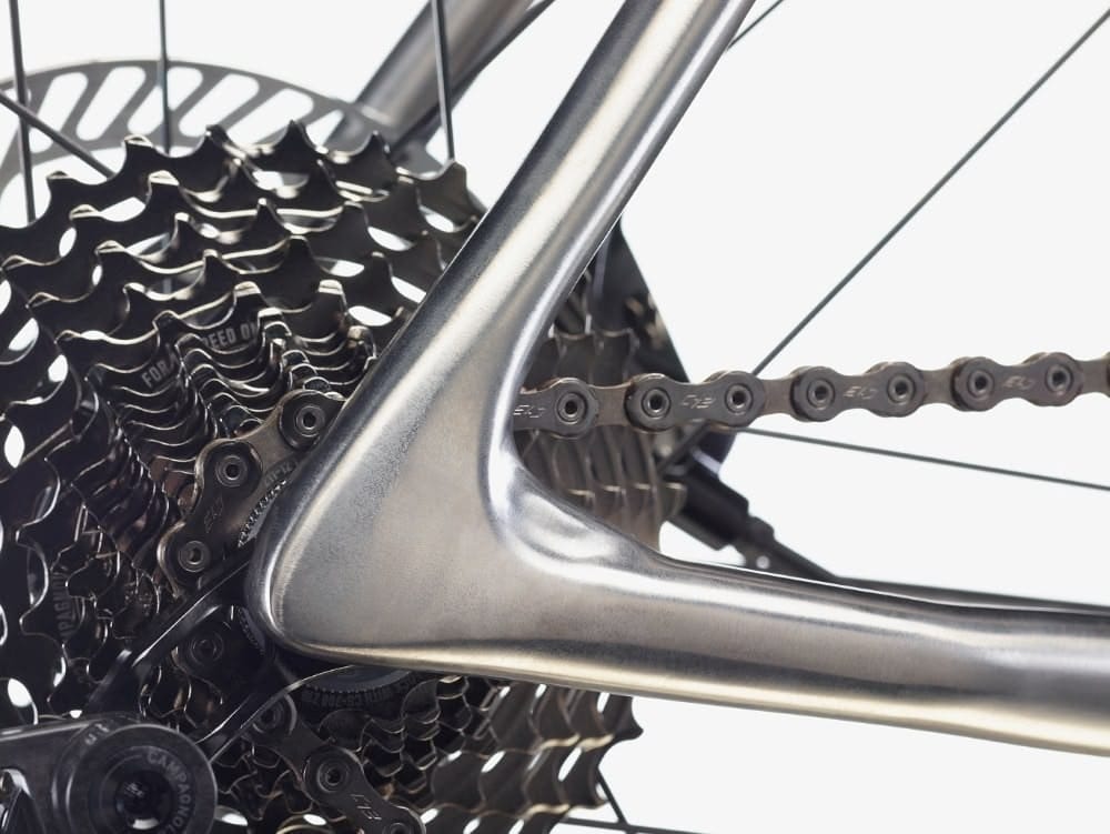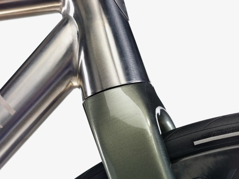 I haven’t seen independent torsional stiffness numbers, and without back-to-back data I can’t quantify how much stiffer it is versus its predecessor. But if you’re spending €8,560 on a frame kit, the front-end architecture should drive the decision — not the finish. Titanium still rides like titanium. The steering platform is what’s changed.