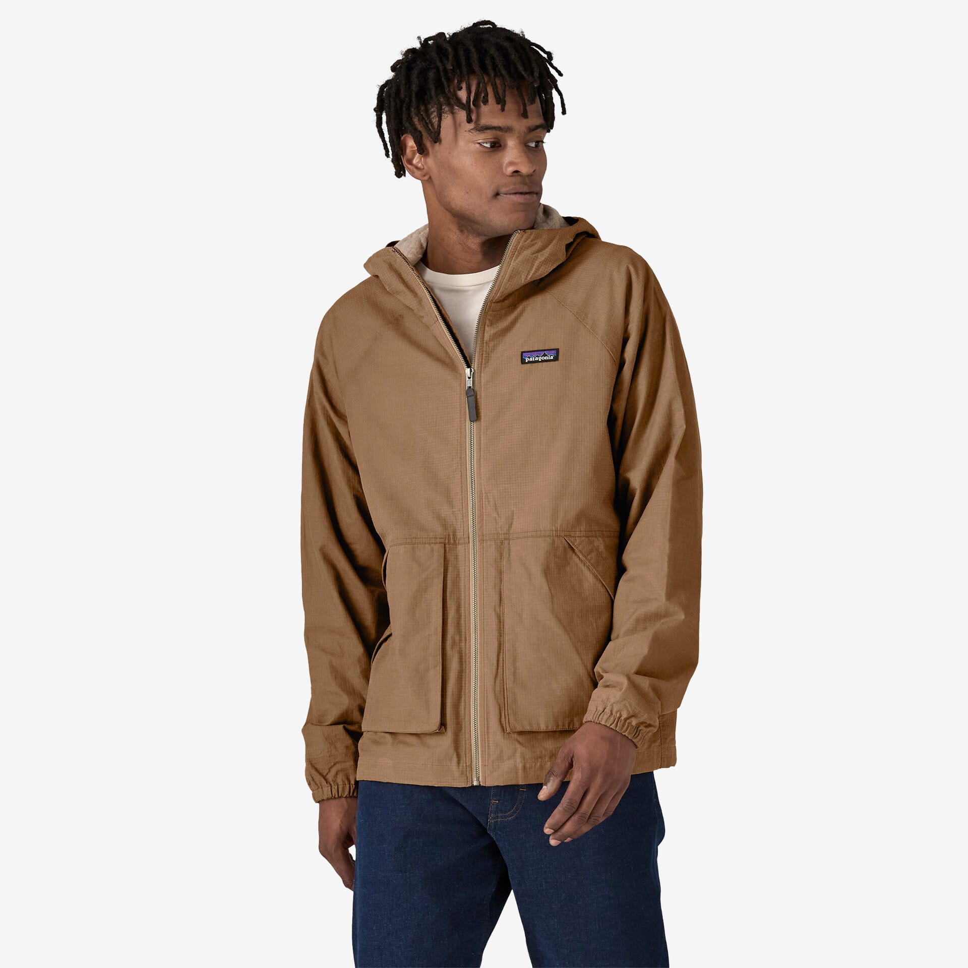 Patagonia has committed to eliminating PFCs and PFAS from its products by 2025. The Lightweight Waxed Cotton Jacket is part of that initiative, providing weatherproofing with a plant-based wax made from food-industry waste. This wax coats the jacket’s 6.9-ounce organic cotton ripstop exterior, offering a natural defense against the elements—perfect for rain, snow, sleet, or hail.