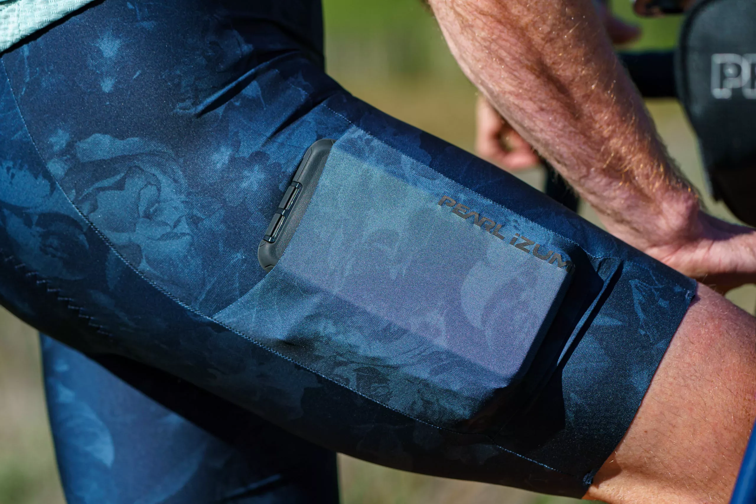 The rear straps of the Expedition Pro bib attach to the short much lower in the back below an outer layer of fabric, this allows you to drop trow without having to remove any upper layers. The drop tail design is also present on the new Expedition Pro Grodeo Suit – Pearl Izumi’s new skinsuit for the rough stuff. Both also feature extra pockets, most notably a nice deep pocket on each leg.