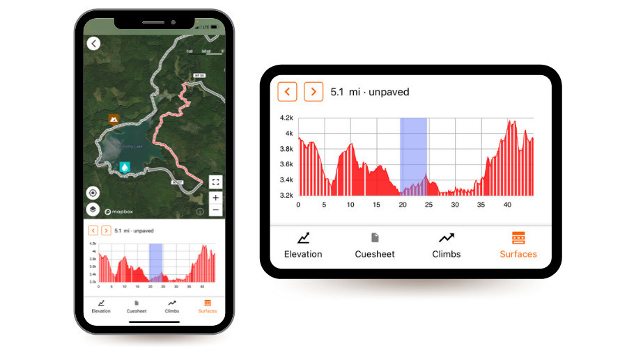 Viewing and navigating routes from your app? Route overview, route lines and elevation profiles will now visually reflect the surface types of your route as outlined above. Likewise, surface types will appear as you plan your route using the mobile route planner as well. This way, there will be fewer surprises as you route a detour on the go!“Our mission is to help users go on better rides, more often. Knowing the surface type doesn’t just help route planners, it provides a better riding experience for everyone, and encourages folks to discover more places to ride,” said Zack Ham, Ride with GPS founder.