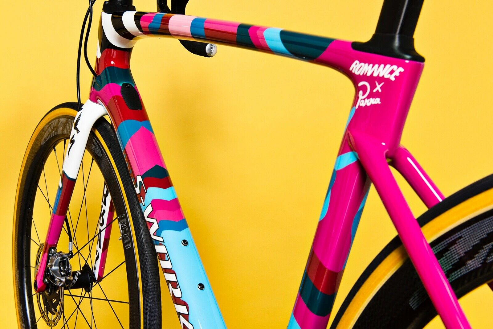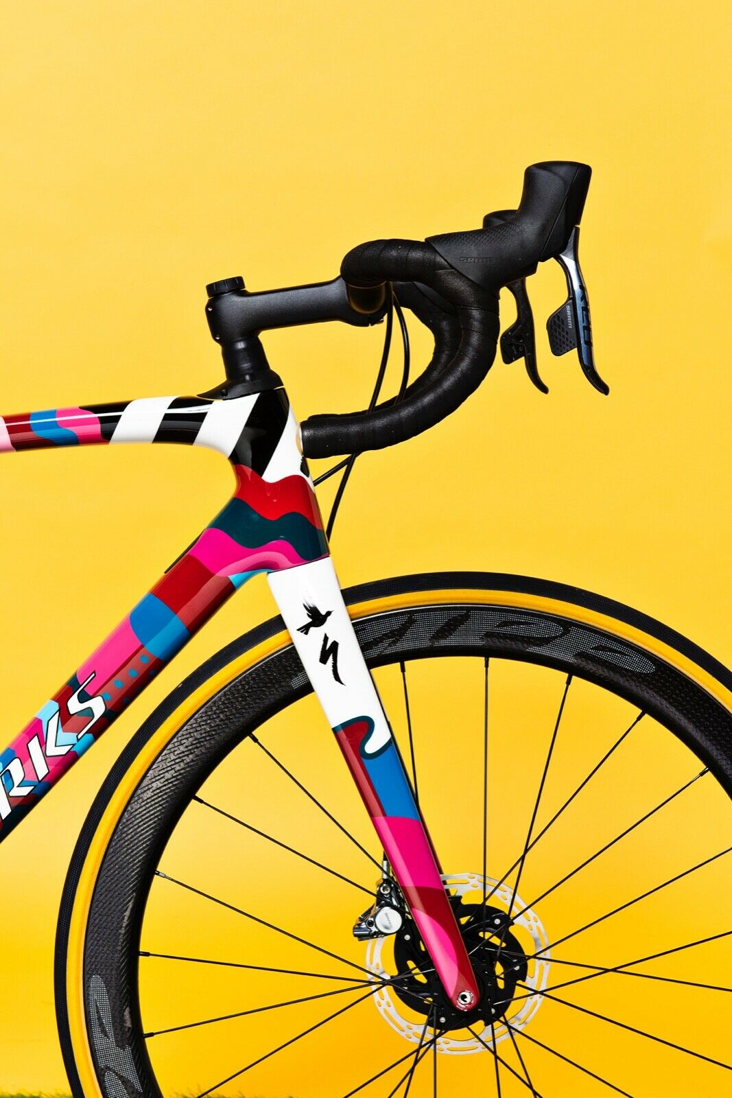 Independent cycling apparel brand, Romance, have teamed up with world-famous Dutch artist Piet Parra to produce a one-off, fully customised Specialized S-Works Roubaix bicycle with all proceeds going to World Bicycle Relief.