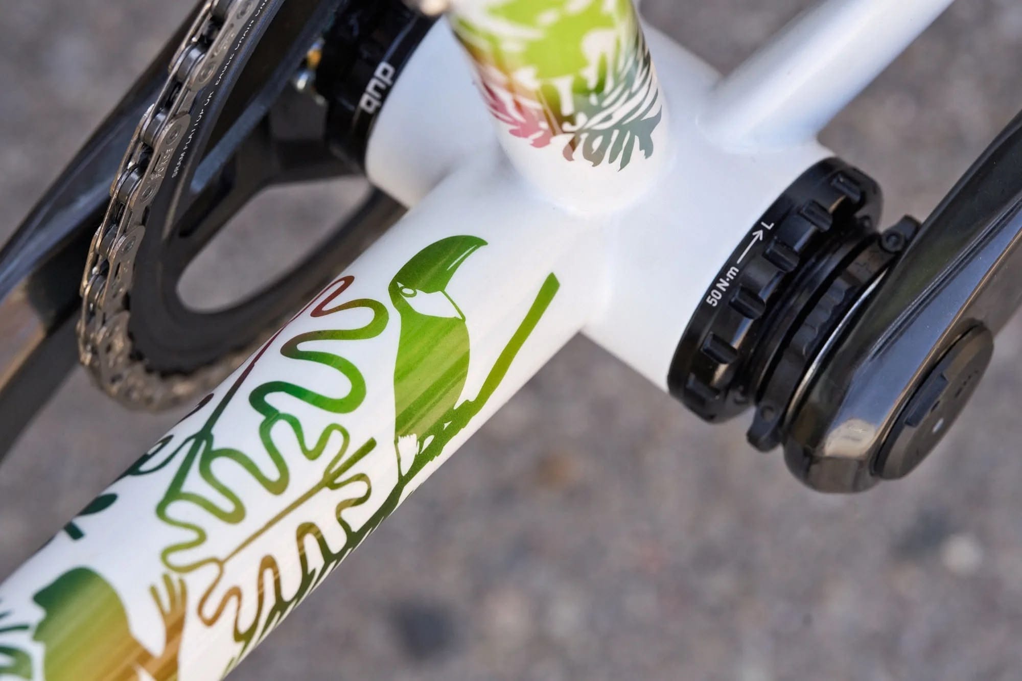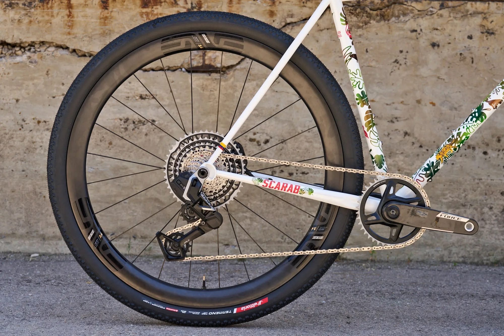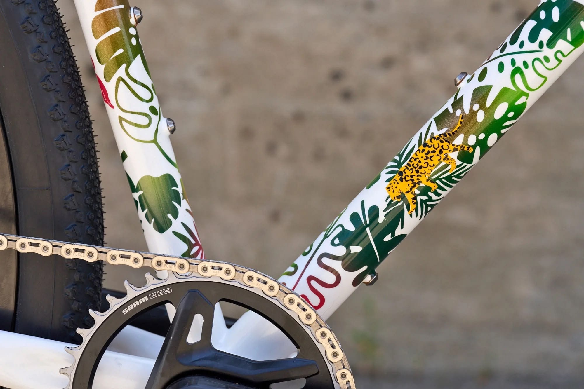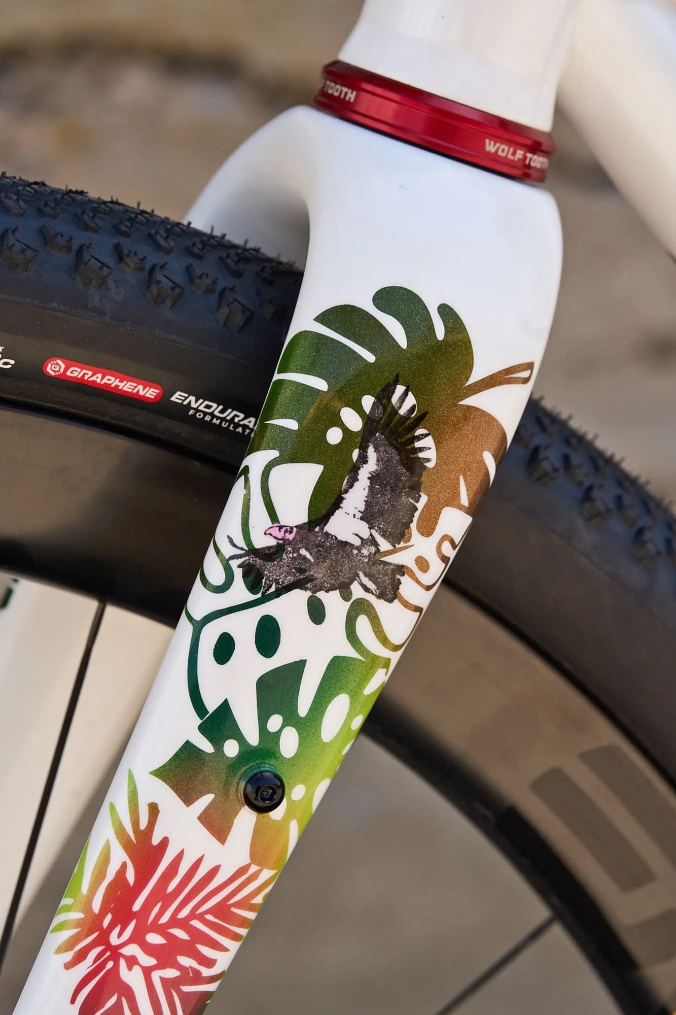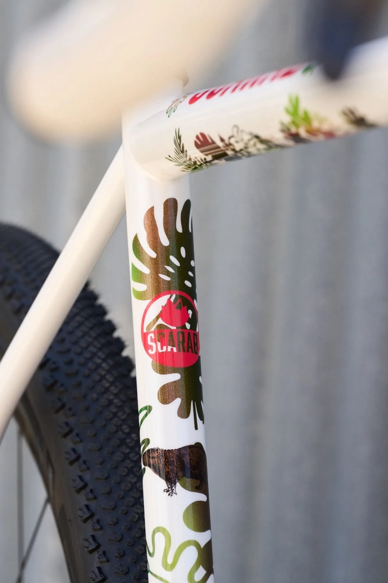 Handcrafted in Colombia from a size-specific mix of premium Columbus Spirit and Life steel tubing, the Páramo Integrated is built for a responsive and compliant ride. Starting at $3,850 for a frameset, each bike is a fully custom endeavor, including bespoke geometry, an ENVE Integrated Gravel fork, and a Wolf Tooth headset for a sleek, cable-free cockpit. One of Scarab's biggest draws is their artistry, showcased in stunning paint schemes. Debuting at the Enve Builder Round-Up, the new "Tropical Cliché" finish—an homage to the Chocó Jungle— exemplifies their incredible detail work. For those seeking the pinnacle of custom steel gravel performance with a truly unique aesthetic, the updated Páramo Integrated presents a compelling and versatile option.