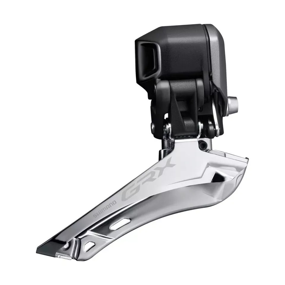 Starting at the front, Shimano GRX front derailleurs offer more tire and frame clearance thanks to a new outboard +2.5mm chainline design. Because of the outboard chainline, GRX front derailleurs are only compatible with GRX cranksets. RX800 series front derailleurs are promise outstanding shifting performance despite increasing front gearing range to a 17T delta. 800-series derailleurs are available in mechanical and Di2 versions.