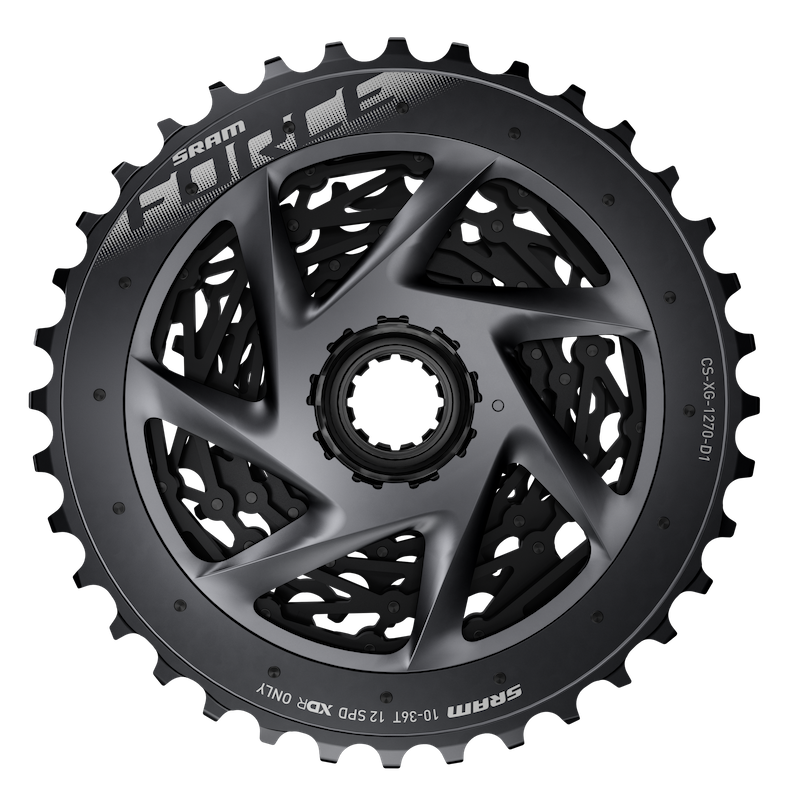The new Force XG-1270 10-36T cassette, designed for XDR freehub bodies, is compatible with all 1x and 2x eTap AXS cranksets. It requires the new 36t max rear derailleur option.