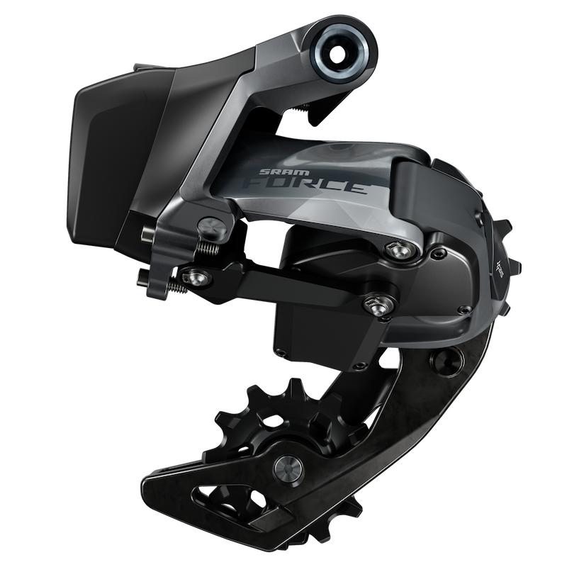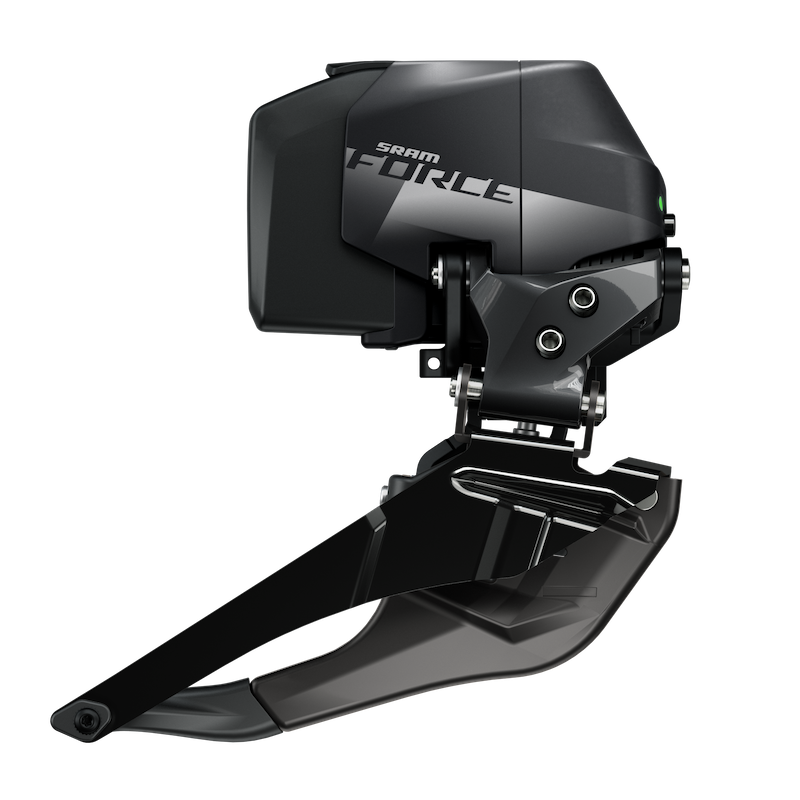 The new 43/30T crankset requires a Force eTap AXS Wide Front Derailleur to accommodate the wider chainline. Otherwise, this derailleur offers the same features as the regular Force AXS front derailleur.