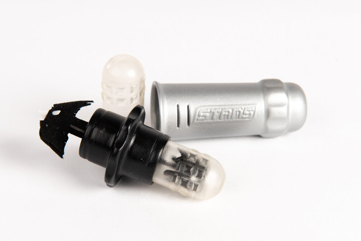 DART changes the formula a bit by introducing a piece of flat fabric in place of the thread that is inserted into the damaged tire. It’s more like a tiny rag. According to Stan’s NoTubes, DART provides a scaffold that is easier to seal and incorporates a chemical that reacts with the sealant to actively plug the hole. Stan’s says DART will stay in place better than traditional plugs and it doesn’t require any trimming.
