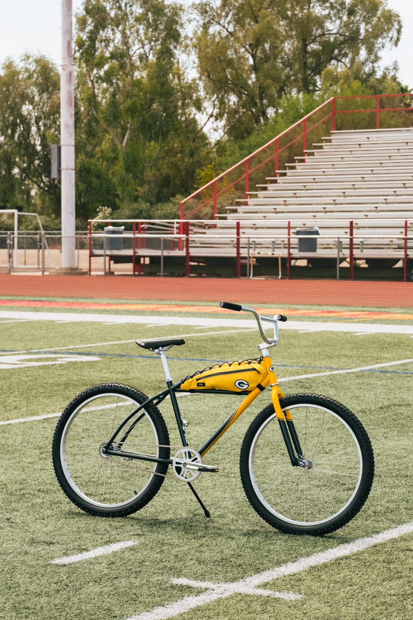 - The State x NFL Klunker: A nod to the pioneering Repack Klunkers of mountain biking's early days, this model is built for fun and versatility. It’s a classic single-speed featuring a durable coaster brake, robust 27.5" x 2.4" tires ready for varied terrain, and a clever, frame-mounted bottle opener – perfect for those pre-game refreshments. Every team in the initial launch will have a Klunker available.