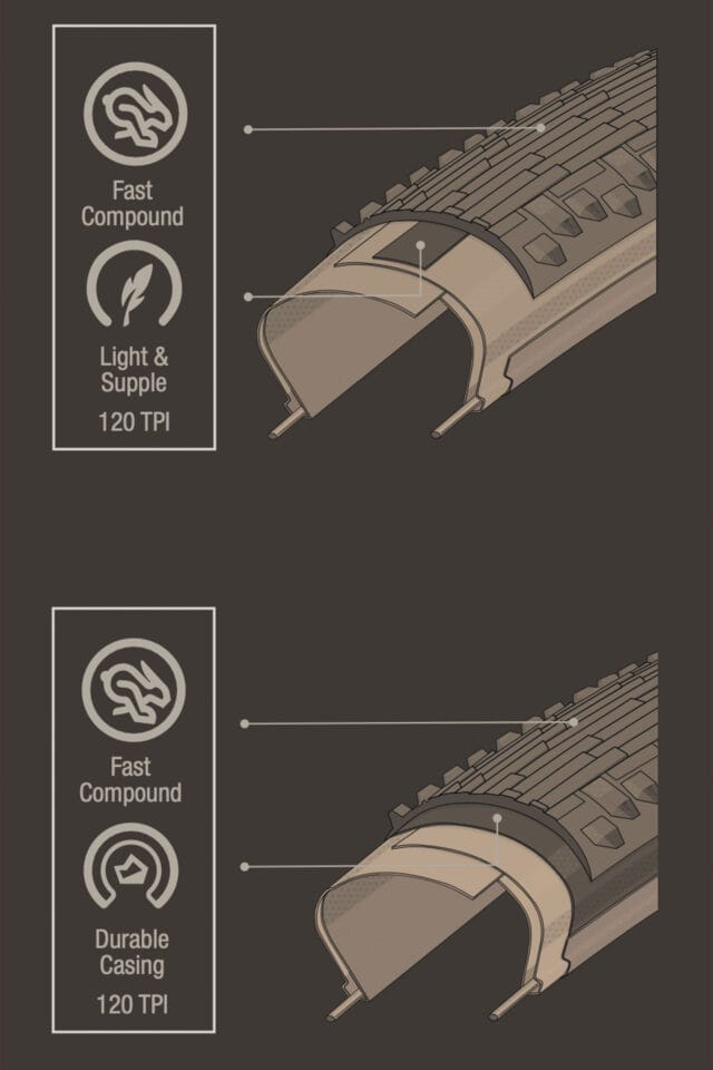 - File Tread Center: Promotes low rolling resistance for fast acceleration and efficient riding on smoother sections.
