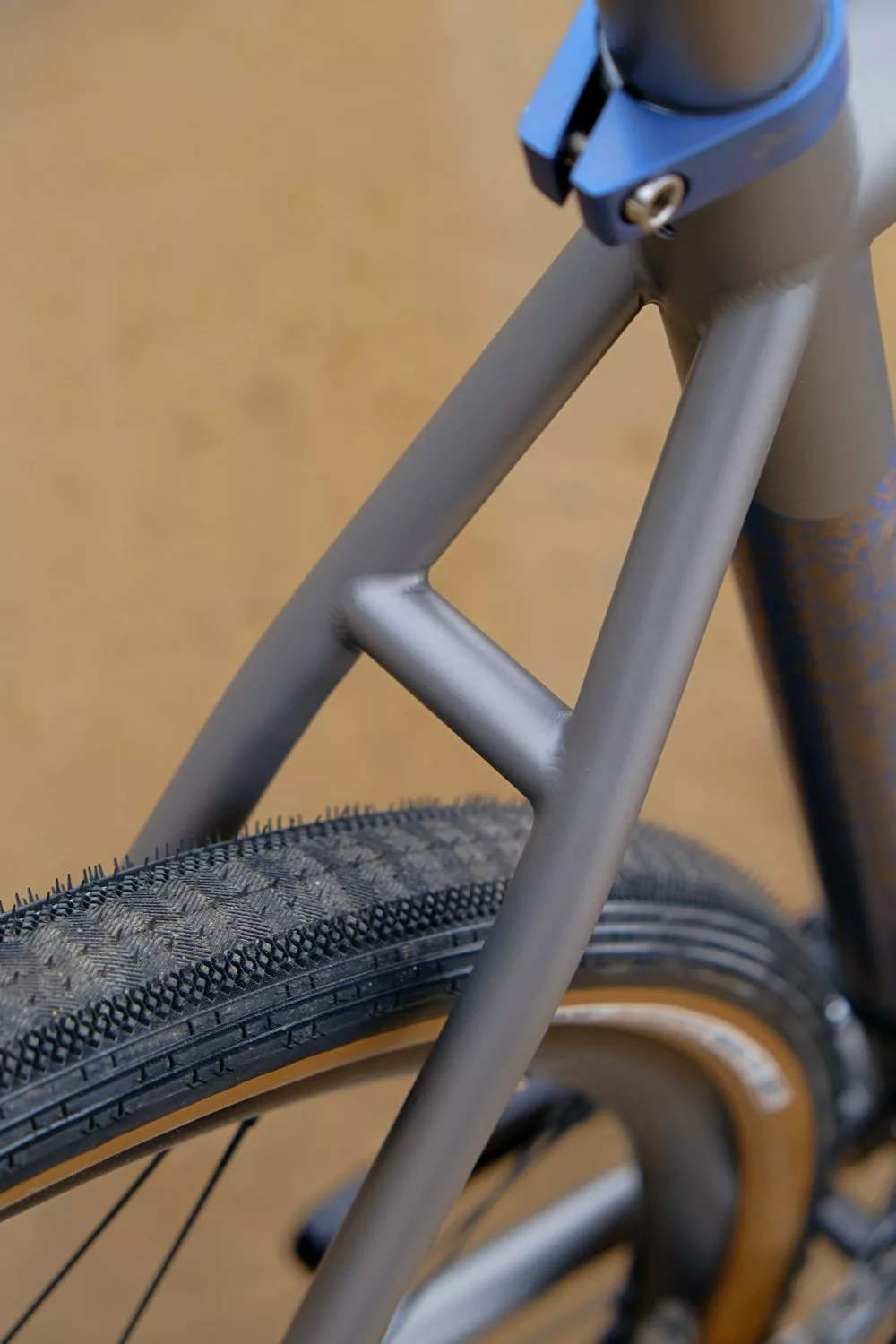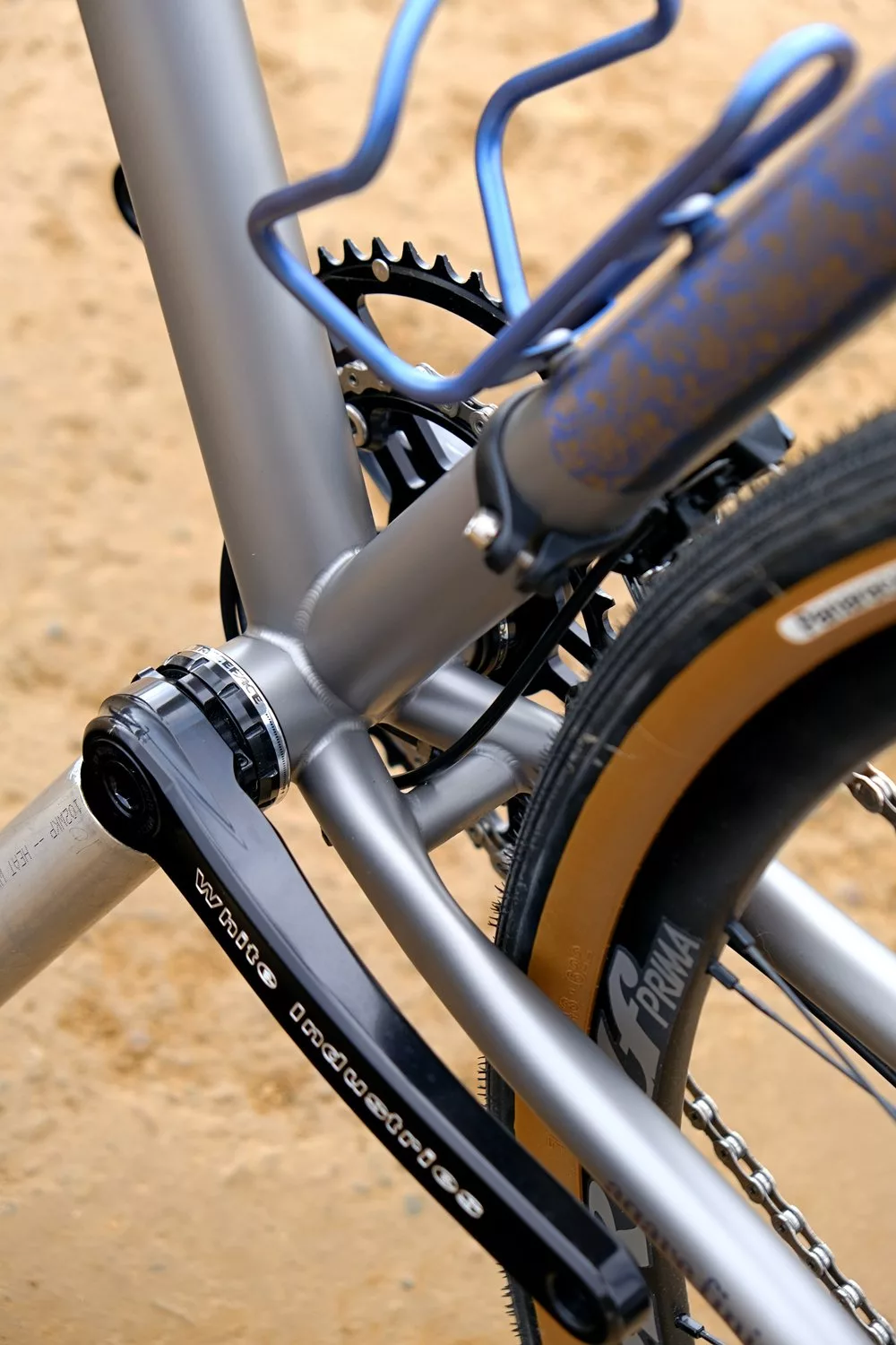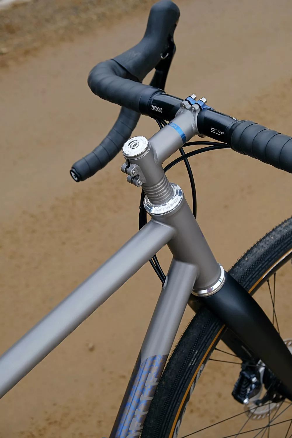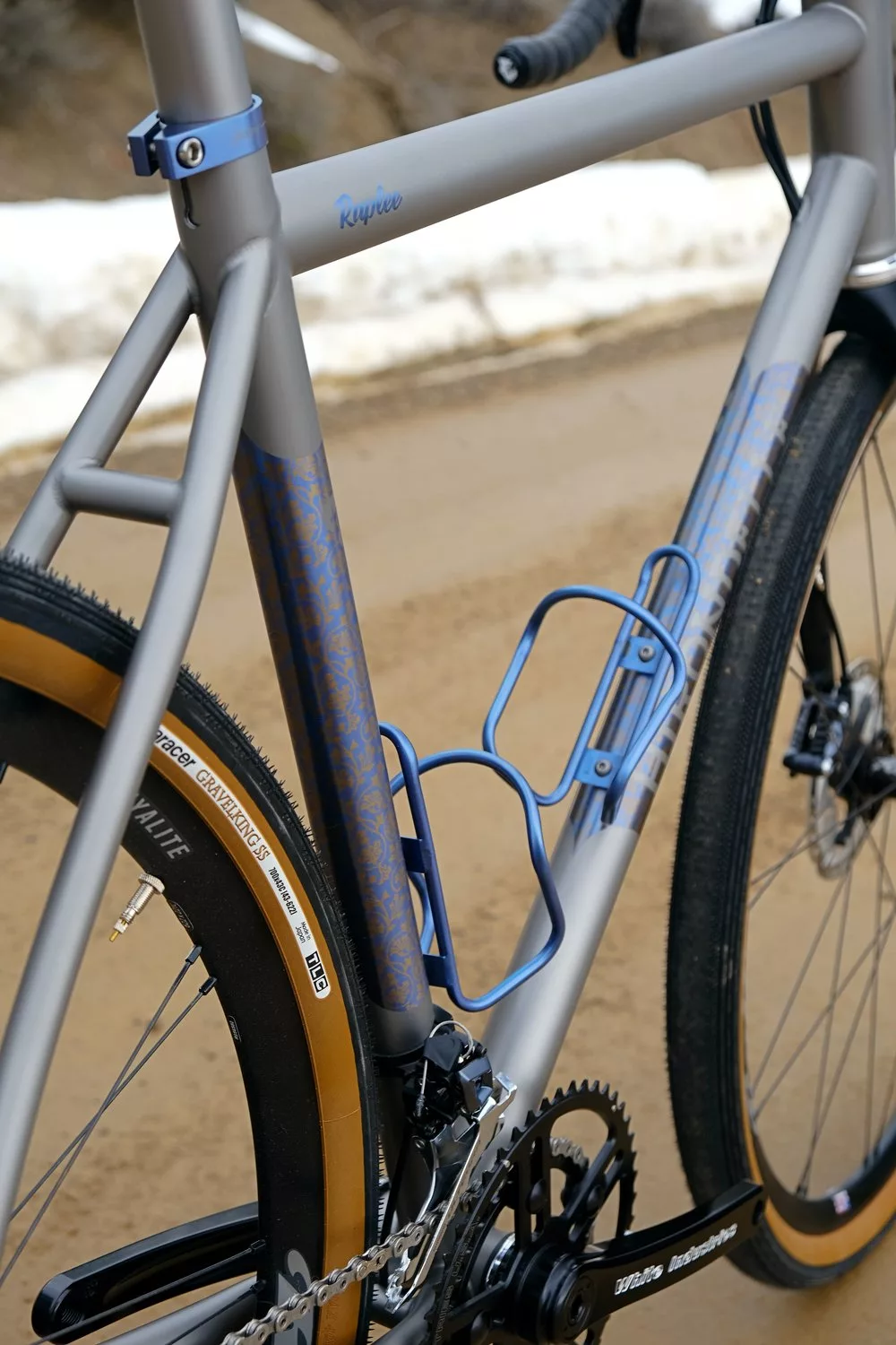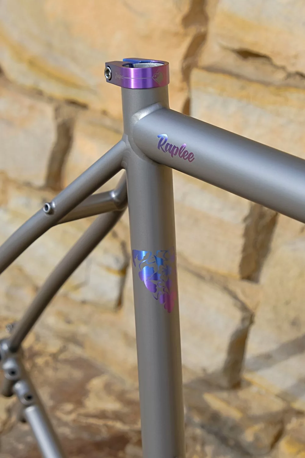 Frames come standard with a single color anodized graphics (a range of options are available), a color matched Juniper seat collar, color matched ti bolts, a silver White Industries headset, and a Juniper carbon gravel fork. If Juniper ti components are purchased with the frame, they’ll come with highlights matched to the anodized color of your frame. Internal routing available at no extra charge. Rack and fender mounts, bento box and Manything cage bosses, and dropper routing are available options. Anodized finishes are done by Agave Finishworks - premium finish options are available, as well as color fades, marbling, and splatter ano. Bearclaw titanium fork upgrade available (+$540). The fork will be finished in a satin base texture to match the frame, with matched anodized logos. Suspension corrected geometry for Fox Float AX and RockShox Rudy is available, please contact for pricing and availability on suspension fork substitutions.