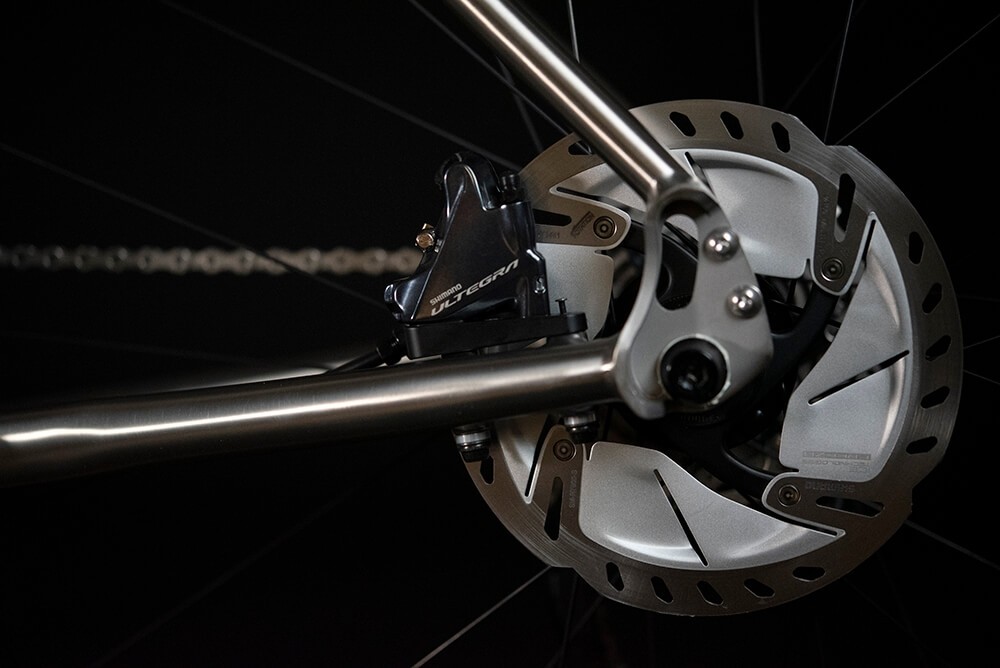The Ribble CGR Ti is built upon a custom profiled 3AL/2.5v titanium frame. The finish is beautiful, with seamless welds and tapered triple-butted tubing. The geometry should perform well both on or off-road. Other improvements include fully internal mechanical and Di2 cable routing. Full mudguard and rear rack bosses and improved tire clearance to accommodate 47x650b and 45x700c.