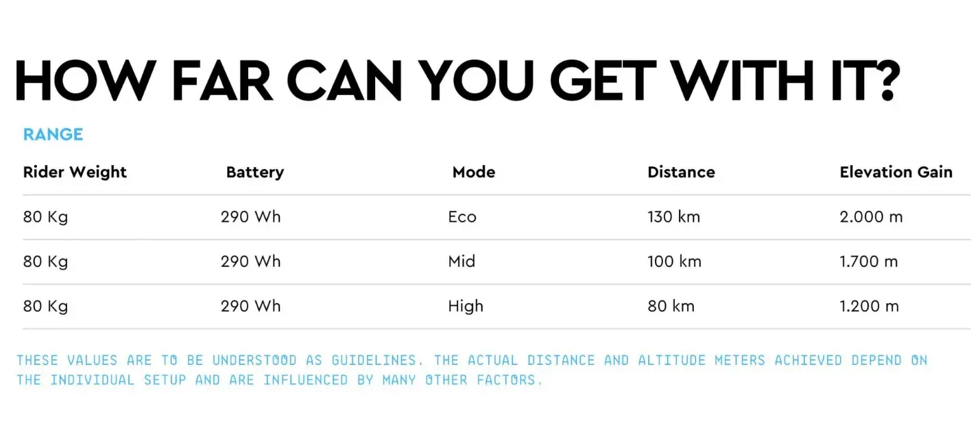- Battery and Range: The slim, 290Wh internal battery was designed specifically for the HPR40, weighing just 1,460 grams (3.22 lbs). The entire system—motor and battery—adds only 2,700 grams (5.95 lbs) to the bike. Thanks to the system's efficiency, TQ estimates a range of up to 130 km (80 miles) in Eco mode. For those seeking even longer adventures, a 160Wh bottle-cage-mounted range extender is available.