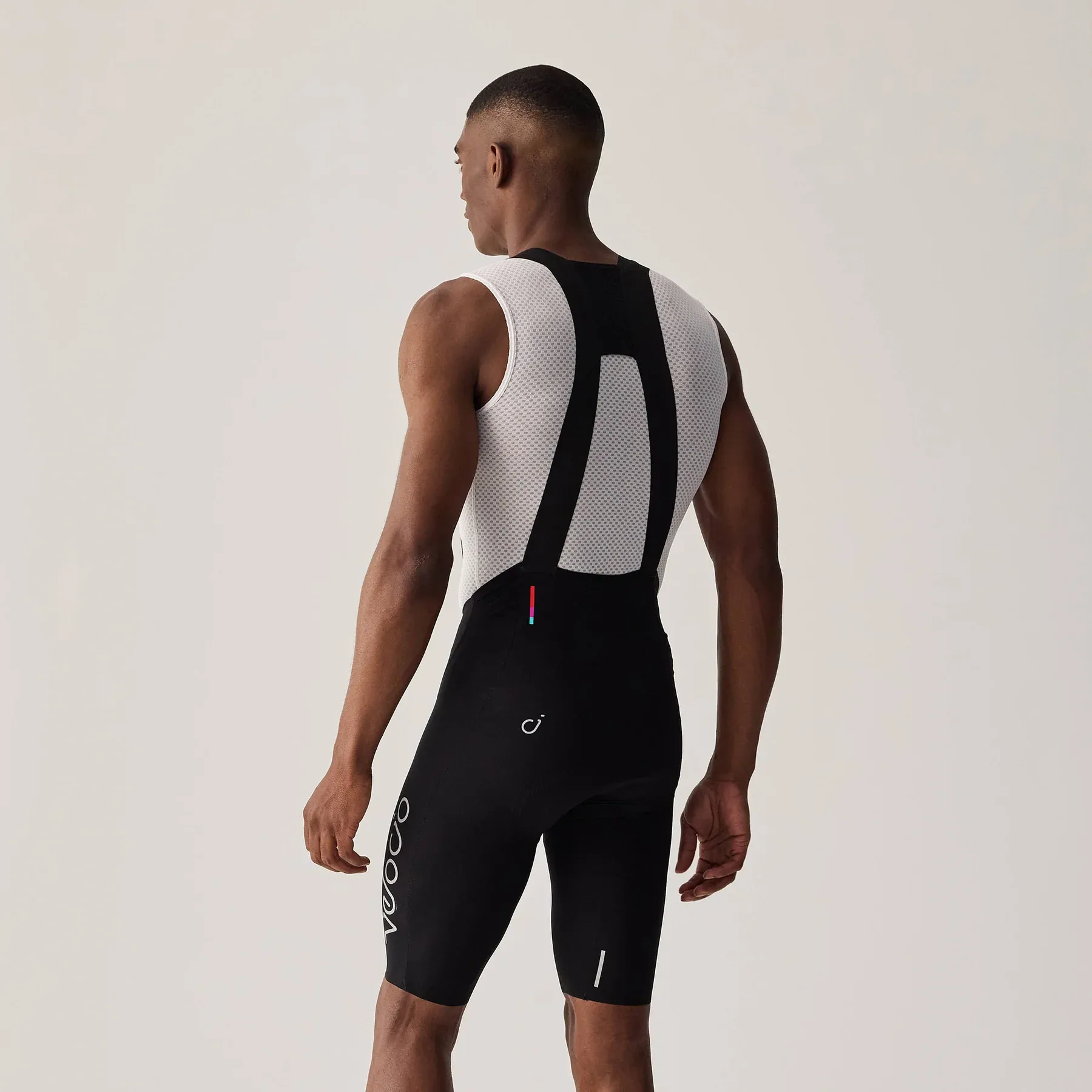 At the heart of the bib short is the proprietary "invisible" chamois. Velocio has engineered a multi-density foam pad integrated so smoothly that the typical zig-zag stitching is eliminated in favor of a flat, invisible seam. This design, complete with a center split line, provides exceptional comfort for long-distance races and all-day rides.