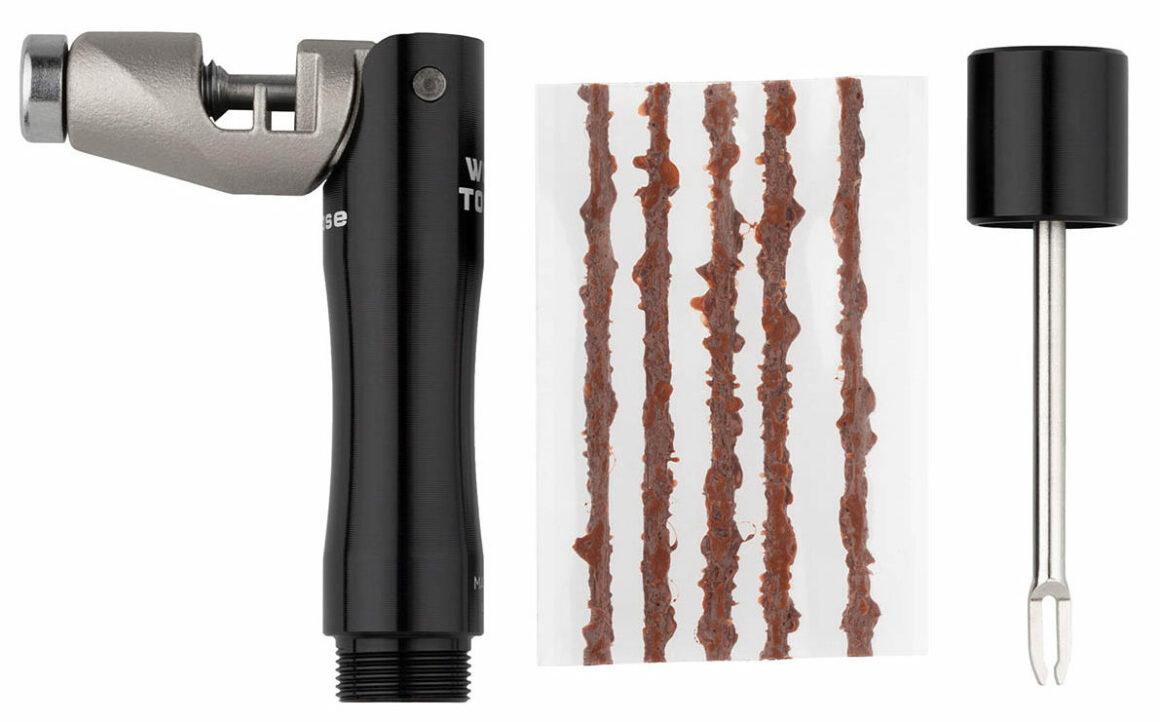 - Inserter tool and bacon strips plug holes in tubeless tires
