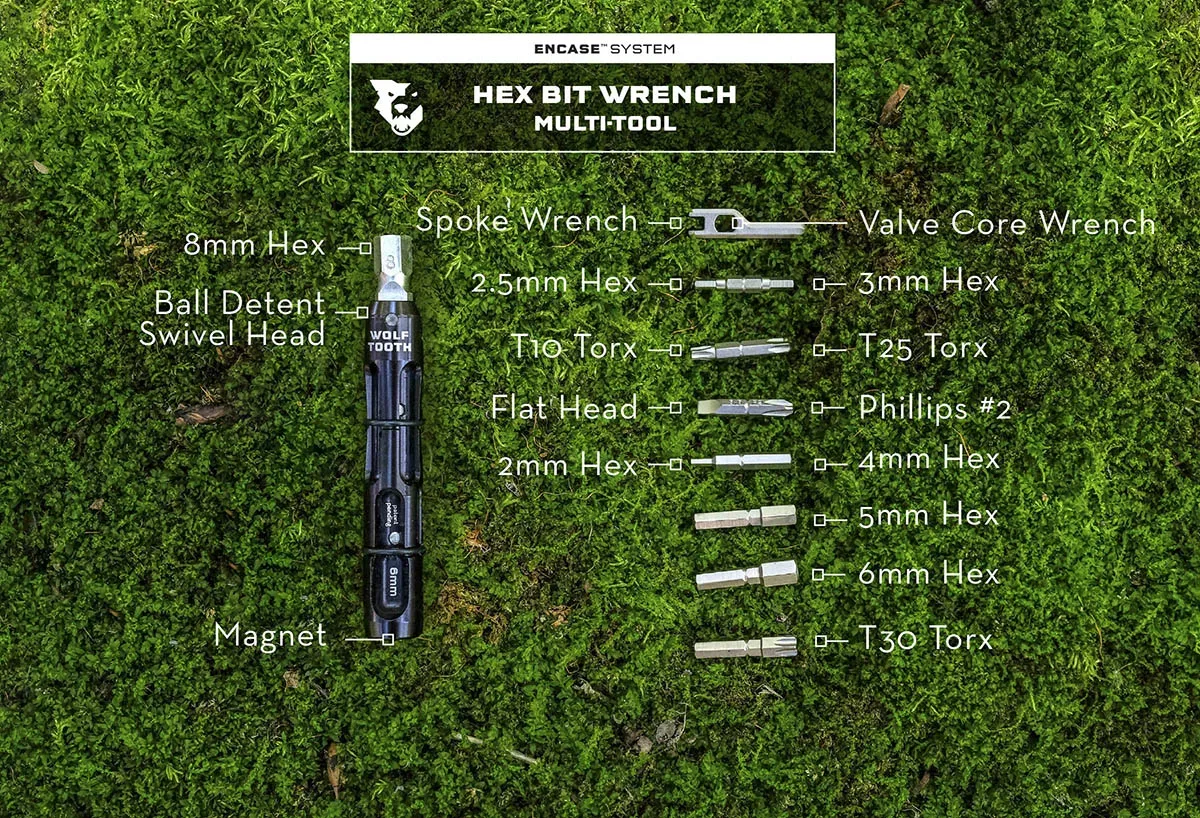 - Store in handlebar with a Wolf Tooth EnCase „¢ Storage Sleeve (sold separately)