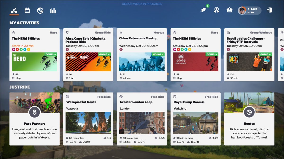 Zwift shared some details on the new user interface its been putting together and it’s a big improvement. The new home page has been completely reworked to improve navigation, regardless of which platform you run Zwift on.